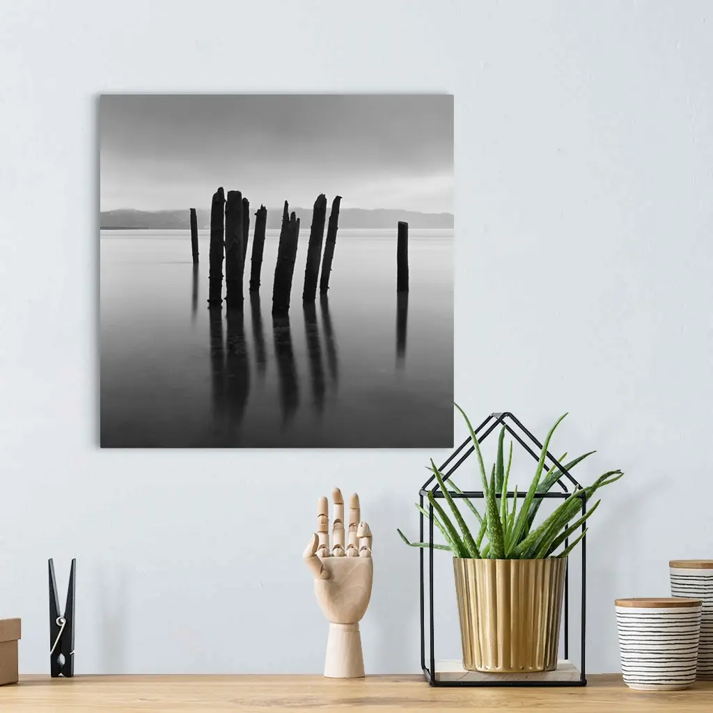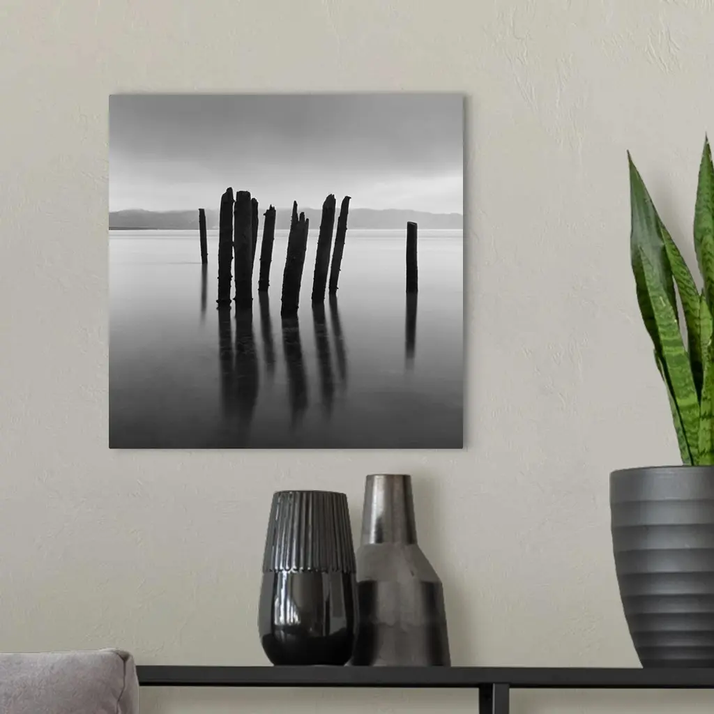 Long Exposure of lake and timbers in water at Astoria OR, on a foggy morning