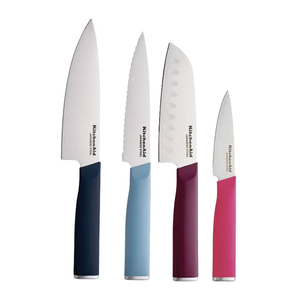 Slice bread, chop vegetables and trim raw meat with this handy set of knives. Color-coded to avoid cross contamination, each knife comes with a matching guard to protect the blade and allow for safe transport in a picnic basket or camping kit. A non-stick ceramic finish coats the stainless steel blades, aiding in slicing and helping to keep the knives sharp. Cheerful and colorful, this set includes an 8" chef's knife, 8" slicing knife, 8" serrated bread knife, 7" santoku knife, 6.5" utility knife and 3.5" paring knife with blade covers.Cuisinart has been creating inventive and accessible kitchen appliances, cookware and accessories for nearly 50 years. Need help choosing? Here's your essential guide to choosing the best knifeView all Cuisinart