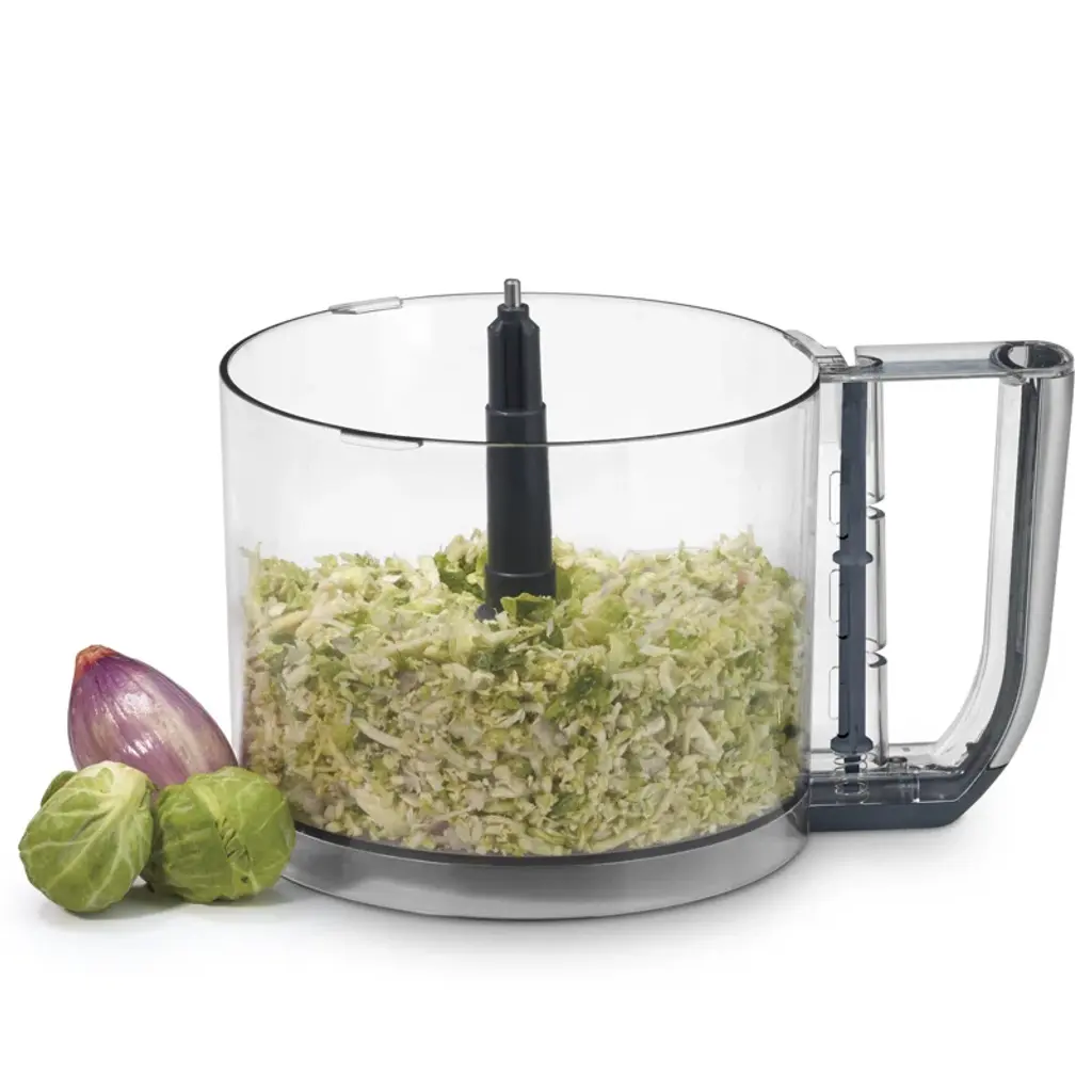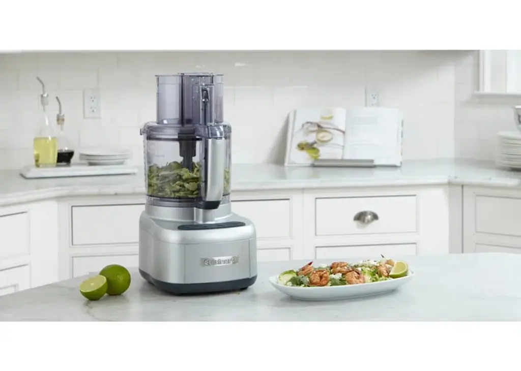 The Cuisinart Elemental 11-cup food processor allows users to quickly and easily prep larger portions of ingredients for bigger meals. With an 11-cup work bowl, 1 stainless steel blade, dough blade, and 2 discs, it's the ultimate time-saver, making quick work of everything from chopping nuts and puréeing soup to slicing tomatoes and shredding cheese. The rubberized touchpad with pulse control offers the ease of use and versatility that makes this classic the favorite of creative home cooks.