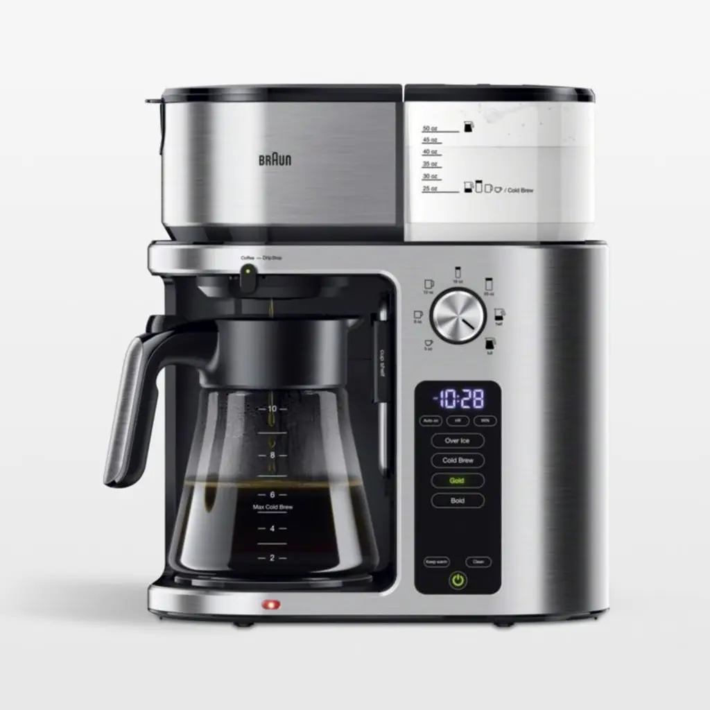 This 12-cup programmable drip coffee maker with timer provides hotter coffee without sacrificing taste. Strength control brews regular or bold with a brew-pause function that lets you enjoy a cup before the brewing cycle has finished. Gold-tone coffee filter means no paper filters and easy cleanup.
