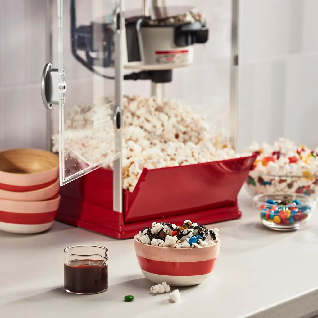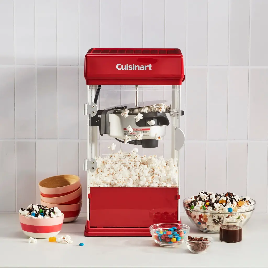 Fluffy, Flavorful Popcorn for the Whole Crowd to Enjoy! Pass the popcorn and savor the fresh flavor—right in your own living room! The Cuisinart® Theater-Style Popcorn Maker pops up to 16 cups of kernels to perfection in minutes, so there's plenty of popcorn for family movie night, game night, or just the two of you on a cozy night in. Complete with popcorn scoop, kernel measuring cup, and oil measuring spoon, this must-have for popcorn lovers makes fresh, fluffy popcorn with all the flavor and none of the fuss. Features: