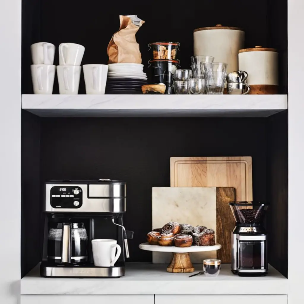 This appealingly industrial stainless steel burr mill grinds every batch of beans perfectly, thanks to two simple controls. Select the number of cups of coffee with the slider bar, then twist the grind-selector to your preferred level of coarseness or fineness. Once your parameters are set, press the power bar; grinding will stop automatically when the correct quantity of beans has been ground. The burr grinders produce uniform grounds to ensure even brewing and optimal flavor, with grounds falling into the chamber below once they are the proper size. Included are a scoop for adding coffee beans to the hopper and a brush for cleaning the grind release area.View all Cuisinart