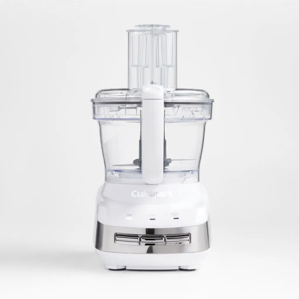 This versatile food processor speeds along prep and cooking with a sleek design and streamlined operation. With a small countertop footprint in bright white, the petite processor features a work bowl ideally sized for smaller batches of sauces, dips, slaws and dressings. Simple button operation offers chop and grind options, and the stainless steel blade automatically reverses to lead with its sharp edge for chopping and pureeing or its blunt edge for grinding spices and more.Cuisinart has been creating inventive and accessible kitchen appliances, cookware and accessories for over 50 years.