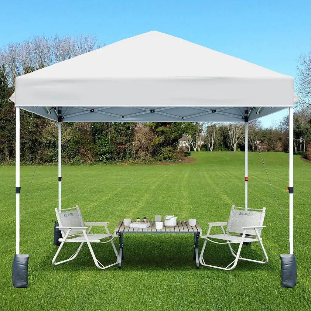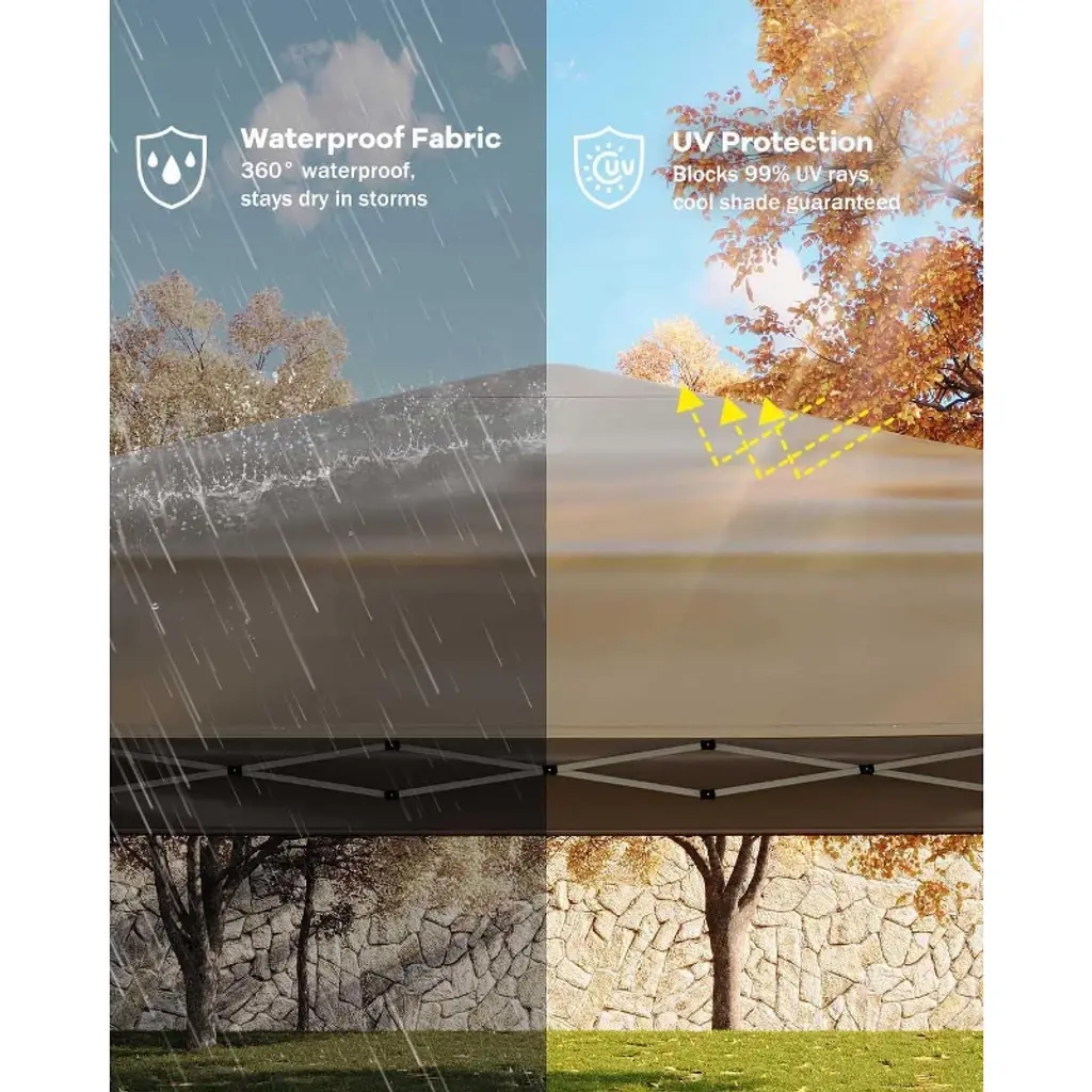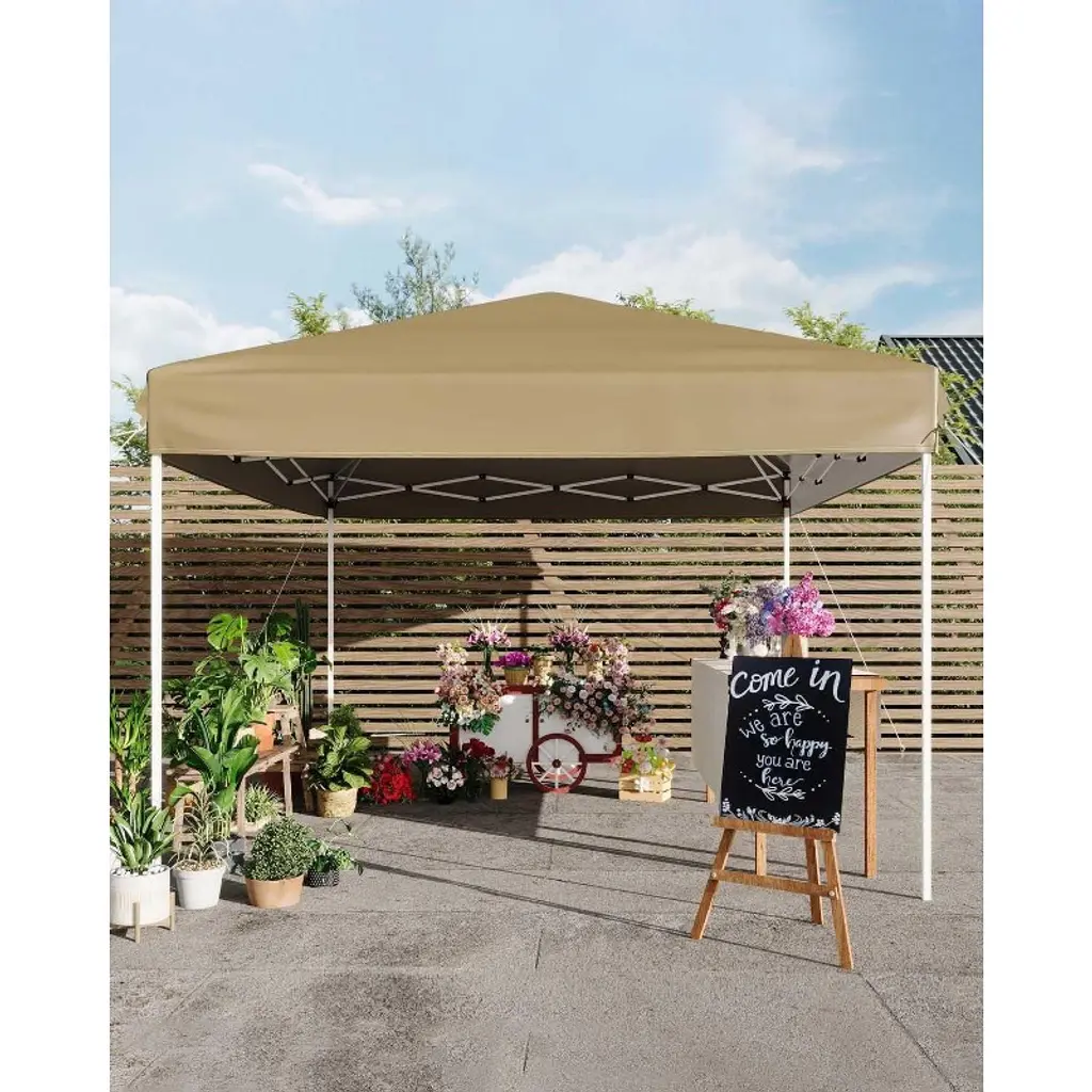 Cuisinsmart 10x10 Pop Up Canopy Tent, Outdoor Tent With 3 Adjustable Height, Easy Set Up Canopy With 4 Sandbags & Carrying Bag, Khaki