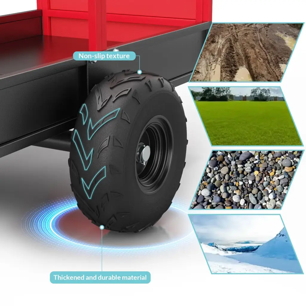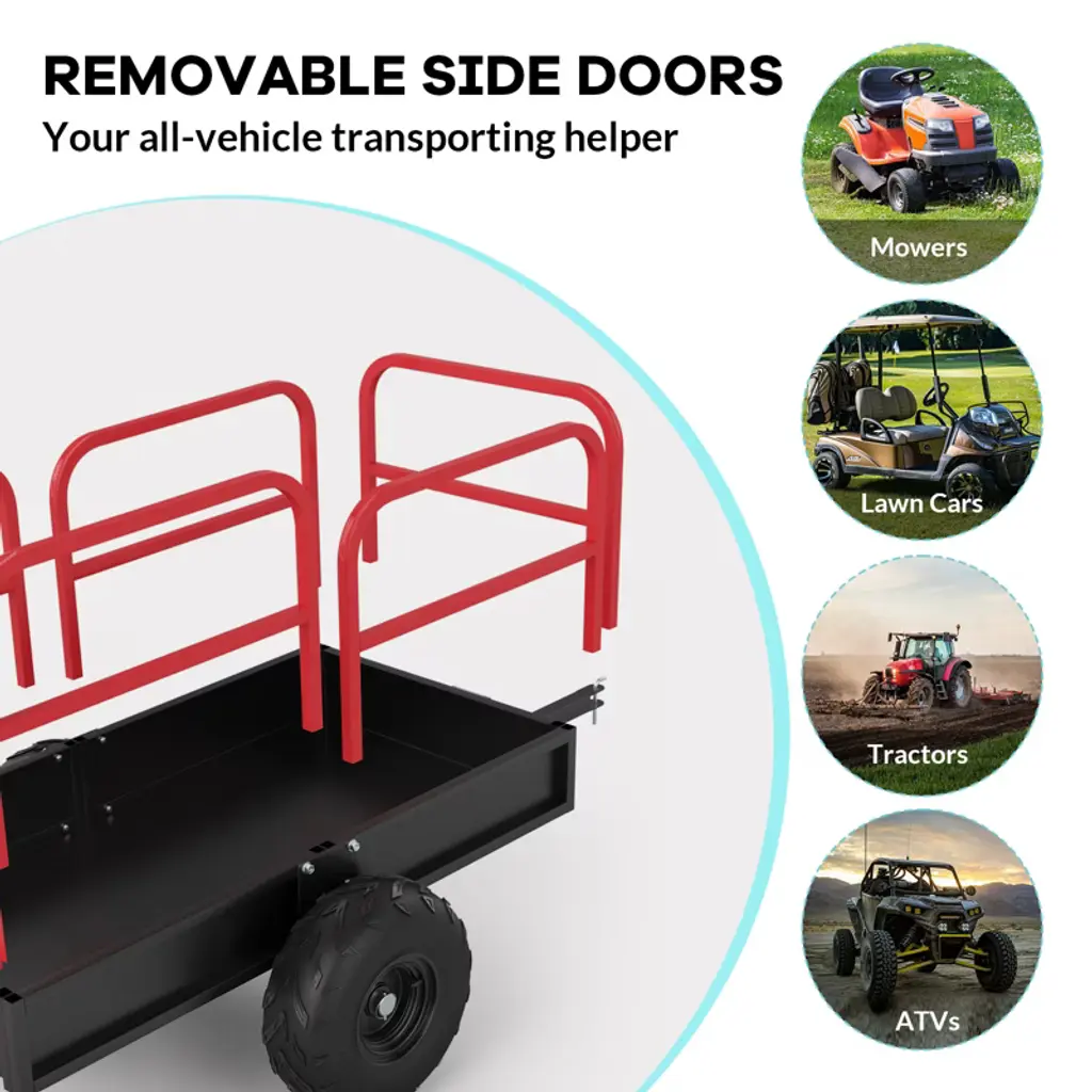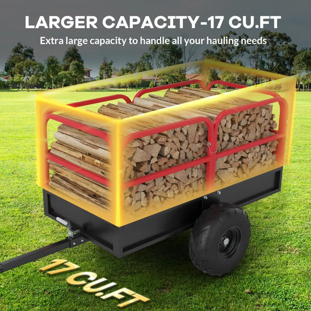 Cuisinsmart Heavy-duty Garden Trailer, 1700lbs Steel Atv Trailer Tow Behind Dump Cart, Load Capacity 17 Cubic Feet, With Removable Sides And 2 Tires