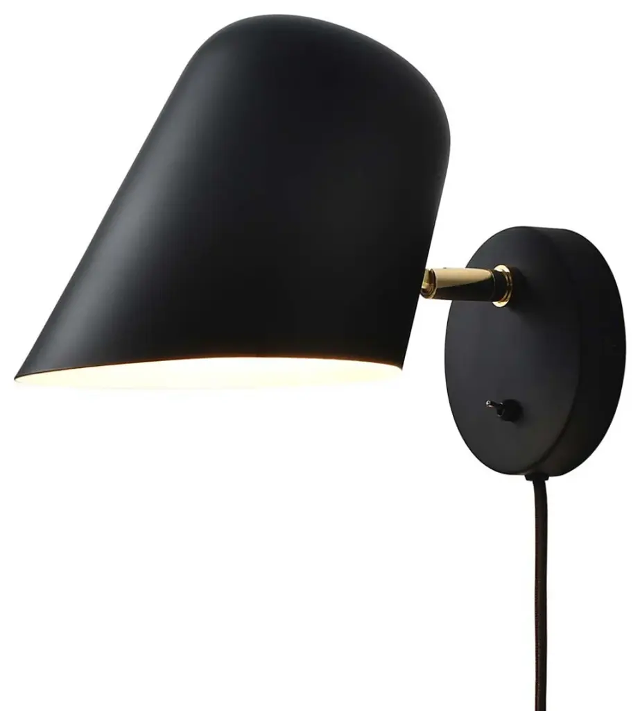 Inspired by a vintage lamp shade featured in the historic Culver Hotel, the Culver Wall Sconce conveys a classic mid-century modern vibe. The matte black finish updates the classic shade for a more modern style. The shade can be positioned to shine the light where needed. Ideal on either side of a headboard in bedrooms. The light has an embedded LED module that sheds reflective light and eliminates glare.• Features a matte black metal shade• On/Off switch on cord• LED module embedded in the shade allows for reflective light and no glare• Ideal for use in bedrooms, dens or home office• Energy-efficient LED compatible.• Contract grade: high quality materials, quality workmanship, built to last a lifetime & designed in Venice Beach, California. • Smart switch compatible - effortlessly sync with Amazon Echo, Google Assistant, and Apple Home for easy & automated control.• NOVA of California is the oldest light company in North America and has been making original contemporary designs for 100 years. • Sustainability Statement: We are committed to minimizing the unwanted impact our business has on the environment. We care for our planet.Discover the Full Collection: Culver is available in various forms, including arc floor lamps and wall sconces. Explore the entire collection to find the perfect piece for your home.