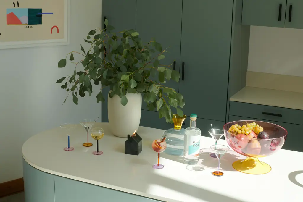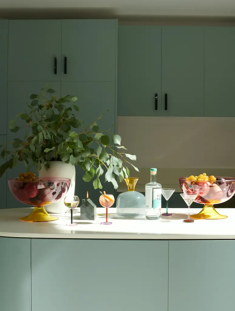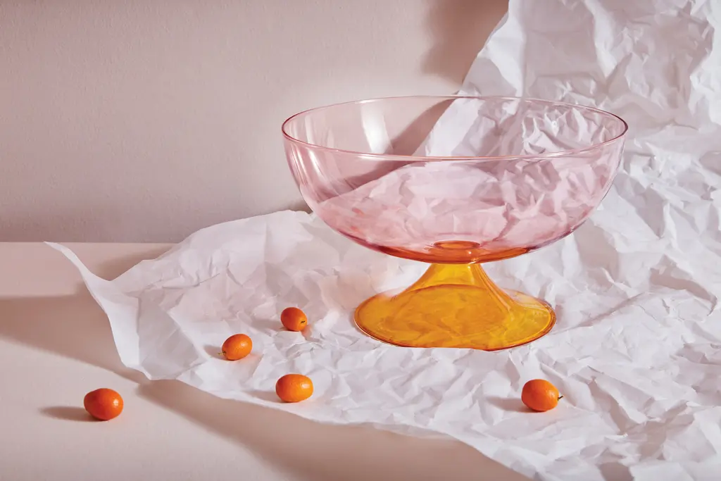 The colorful Cuppone (2015) is made of mouth-blown borosilicate glass. This eye-catching update of a classical form was designed by Aldo Cibic, one of the early members of Ettore Sottsass' Memphis Group, a community of designers who produced postmodern furniture and objects in the 1980s. Please note that bubbles, streaks, and variations in size and color are a natural result of the handmade production process. Made in Italy.