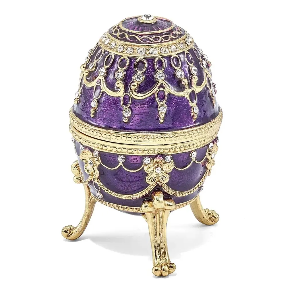 Curata Pewter Crystals Gold-Tone Enameled Imperial Purple (Plays Unchained Melody) Musical Egg -2.5" X 4" - Multi-Color