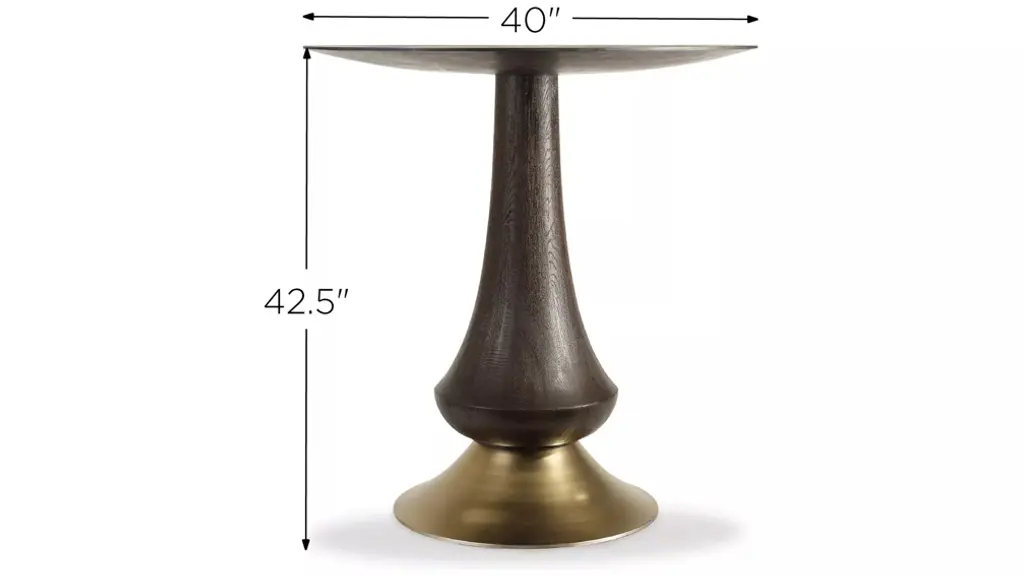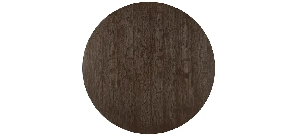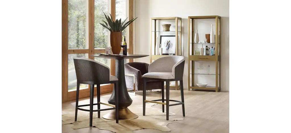 Relax, refresh and linger at this chic modern Curata pub table crafted of White Oak Veneers with the deep brown Midnight finish and accented by a brushed brass metal base. This inviting 40-inch-round table is 42 inches tall.