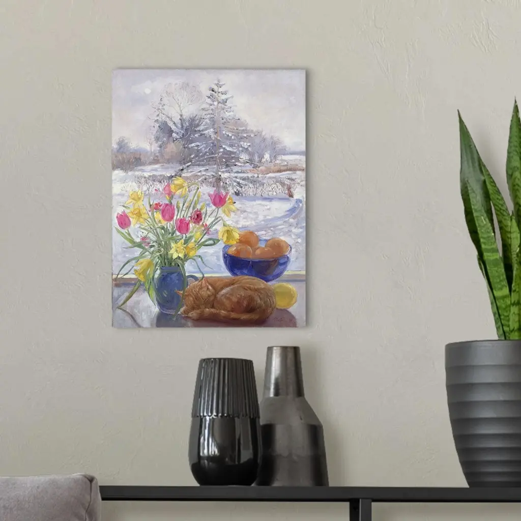 Curled Cat With Flowers wall art for home and office decor. Discover canvas art prints, photos, mural, big canvas art and framed wall art in GreatBigCanvas.com's varied collections.