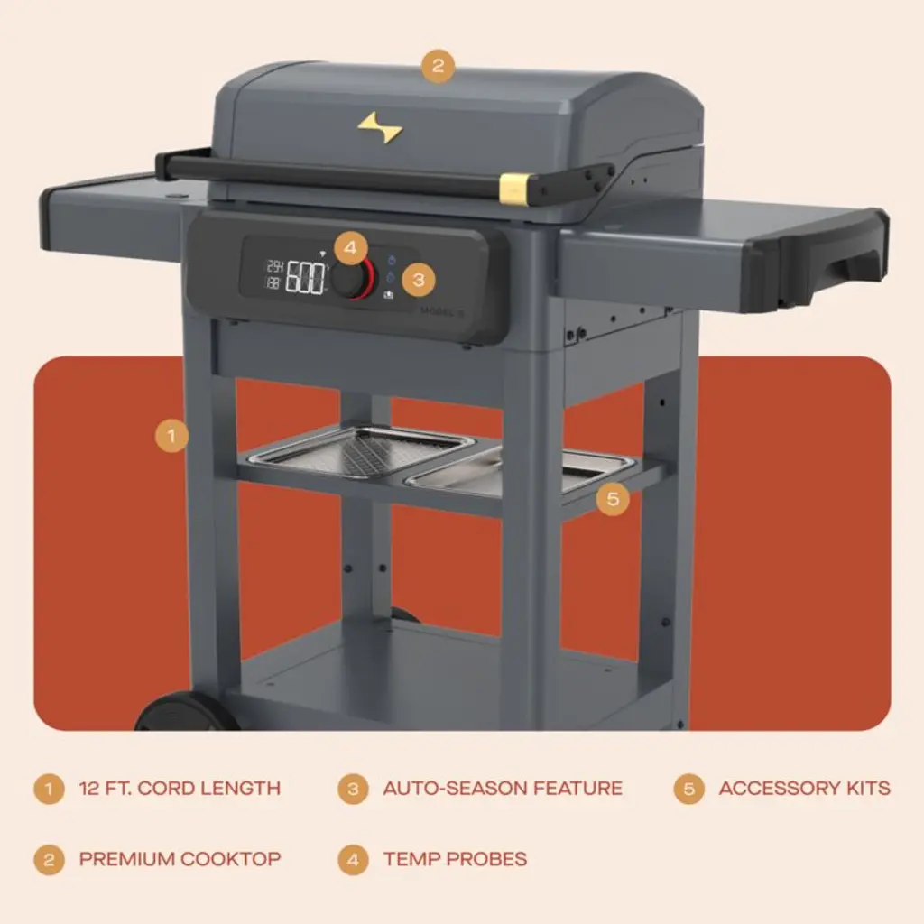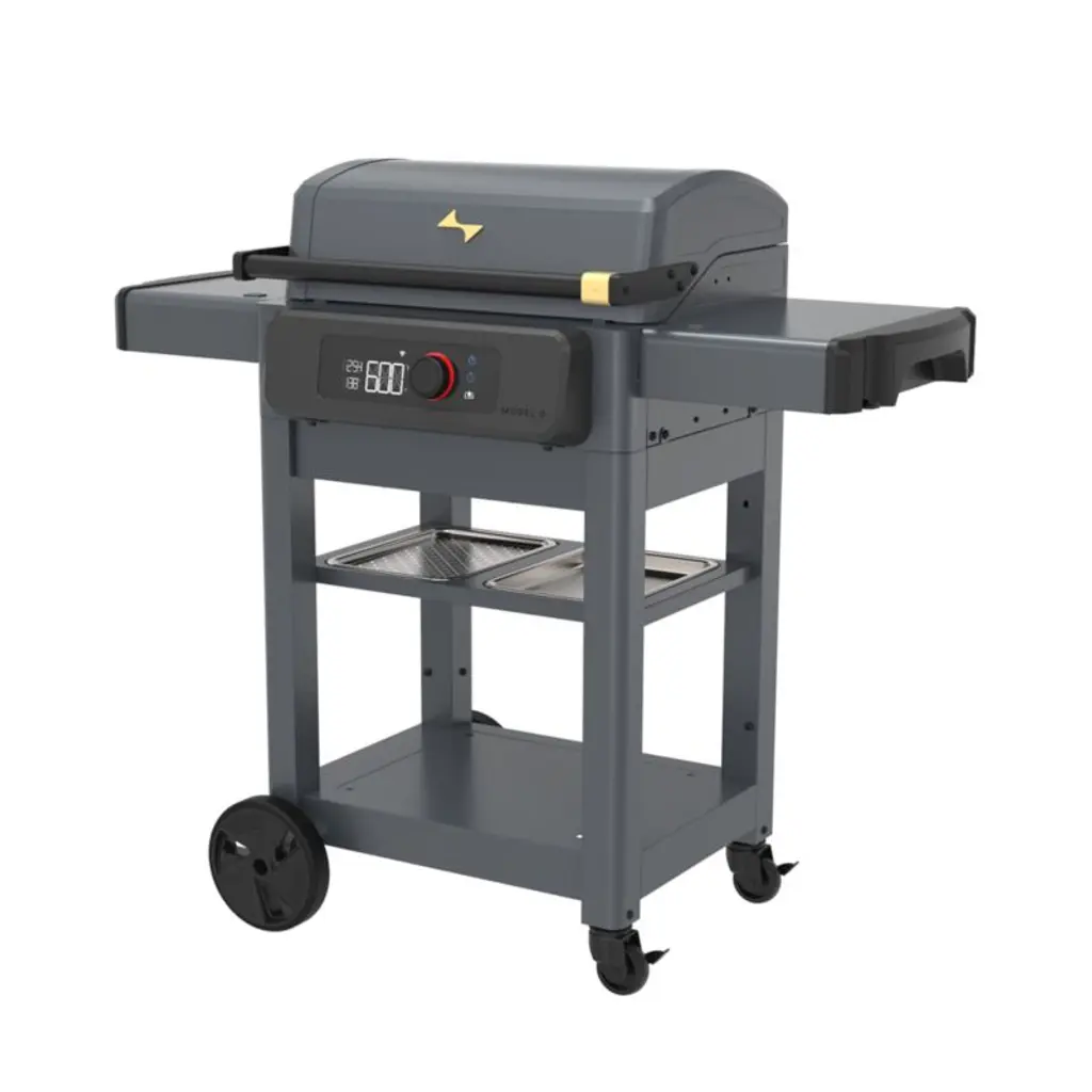 Get cooking in less than half an hour with this easy-to-assemble (and easy to use) griddle. Plugging into a standard outlet, the fully electric griddle heats up in as little as 10 minutes to offer a wide temperature range. Use the digital controls to set and maintain precise temperature control, or download the CURRENT Backyard app to monitor and control the grill and set cooking/internal doneness temperatures using the included stainless steel probe. Crafted of grey cold-rolled steel, this griddle looks attractive on your deck or patio.