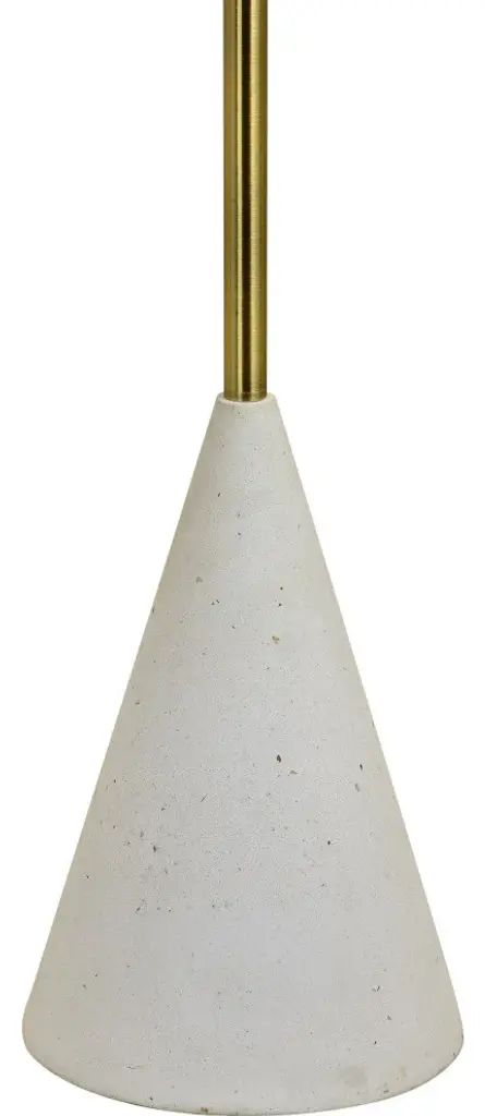 The Atlas Console Lamp is weighted by its globe-like polished concrete base. The slender body, its disc accents, and the circular finial in a blacksmith finish make this a strong design. The proportion of the off-white linen shade on this black lamp brings it a worldly charm.