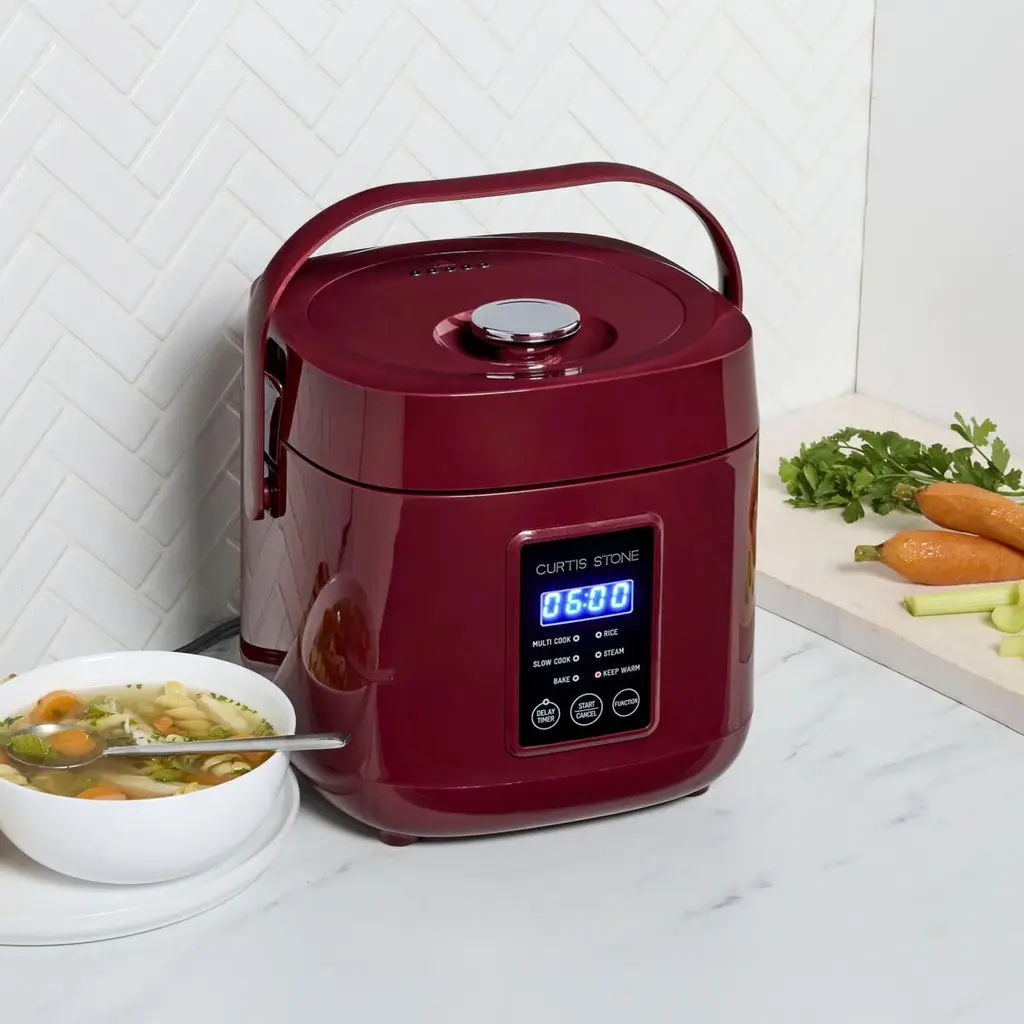 Cook gourmet meals with just the touch of a button using Chef Curtis Stone's 2-Quart Multi Cooker. With six convenient functions to choose from, 400 watts of cooking power, and a 2 qt. capacity, Chef Curtis has all of your favorite meals covered. Its compact size—perfect for meals for one or two people—makes the cooker portable and easy to store. Use it at home, take it with you to work or even out camping. The Dura-Pan nonstick removable lid and cooking pot ensure fast and effortless cleanup. And you'll get five delicious recipes to get you cooking right out of the box.