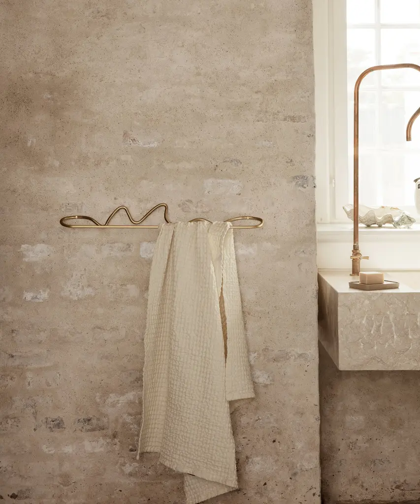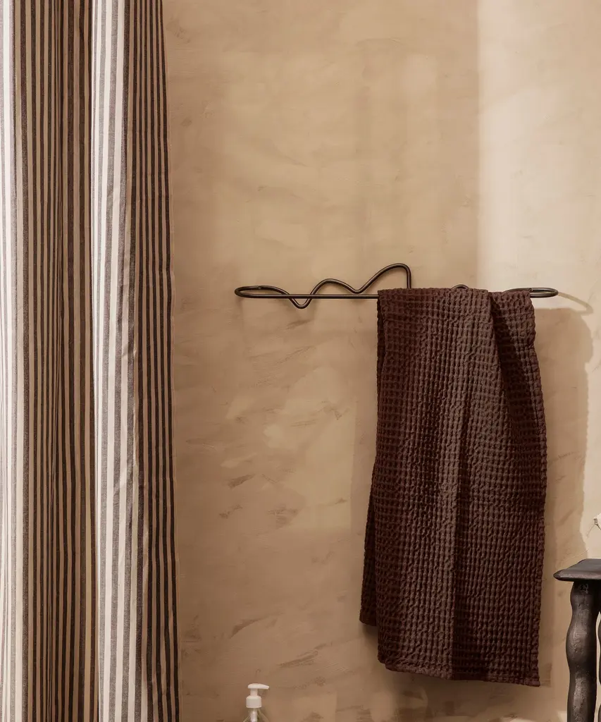 Curvature is a series of organically shaped accessories for the home that have been hand formed in pure, solid blackened brass with a matte finish. The whimsical curves juxtapose the solidity of the material and make a feminine, functional addition to any bathroom or kitchen. With the Curvature Towel Hanger, your towel will hang fresh and dry until needed. Crafted by hand, no two pieces are 100% identical. Designed and produced by the Copenhagen-based studio Ferm Living.