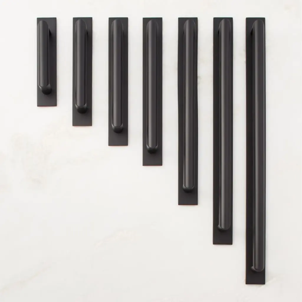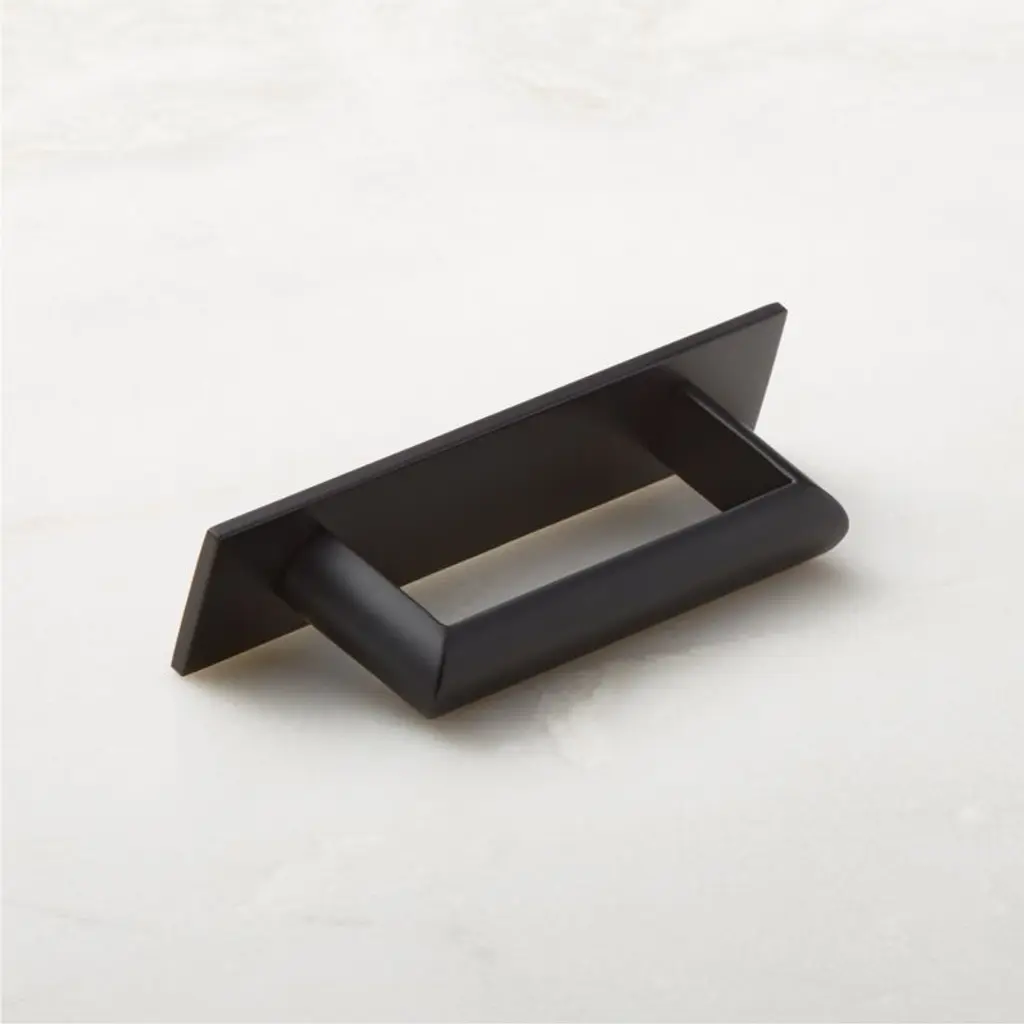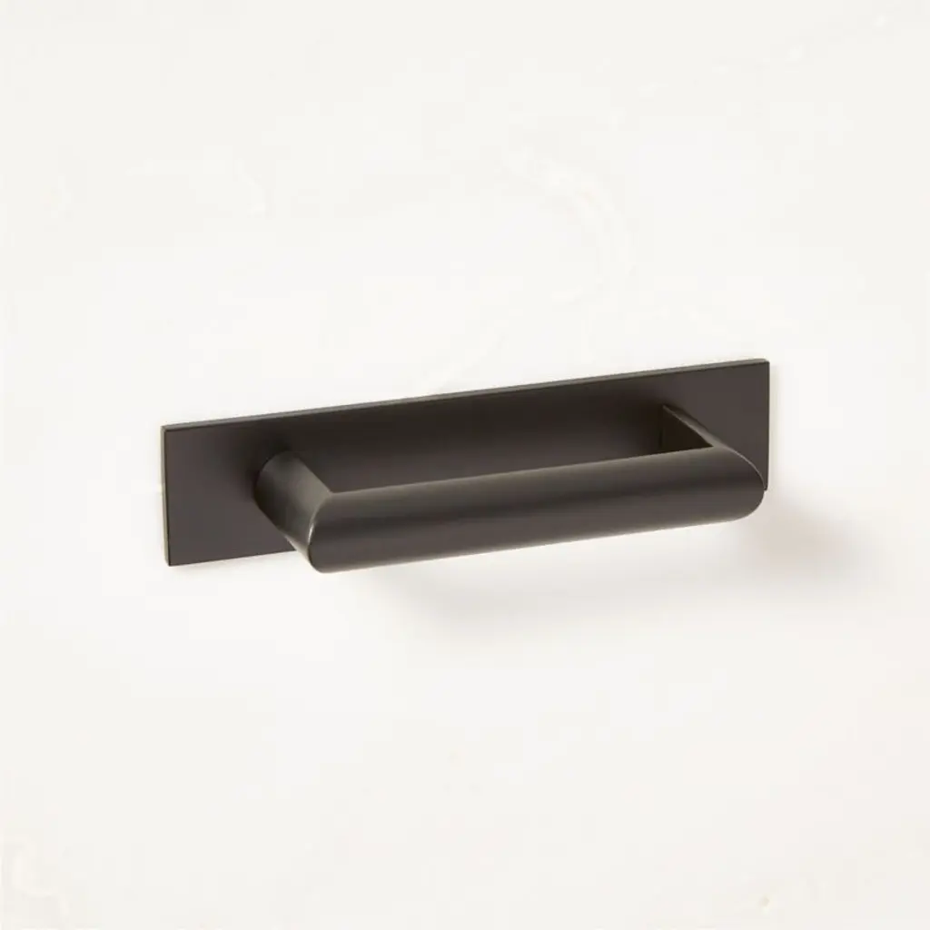 Curveaux Curved Black Cabinet Handle With Backplate 3"