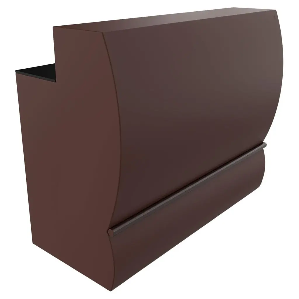 Curved chocolate lacquered classe bar by mowee dimensions: d100 x w100 x h115 cm material: polyethylene and stainless steel. Weight: 31 kg also available in different colors, wheel kit optional, bar union kit optional, led lighting optional. Classe bar is a collection of furniture made by rotomoulding. The distinguishing feature of the collection is the reduction of plastic volumes by incorporating metal structures into the design that lighten the visual weight of the pieces möwee is part of the work, effort and commitment of gaviota, a leading company in the outdoor sector. It was set up as an independent venture to broaden horizons in the outdoor furniture world, with its own distinctive character and way of doing things. Freshness, simplicity, quality and design are at the heart of its dna.