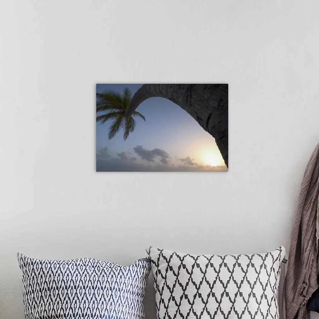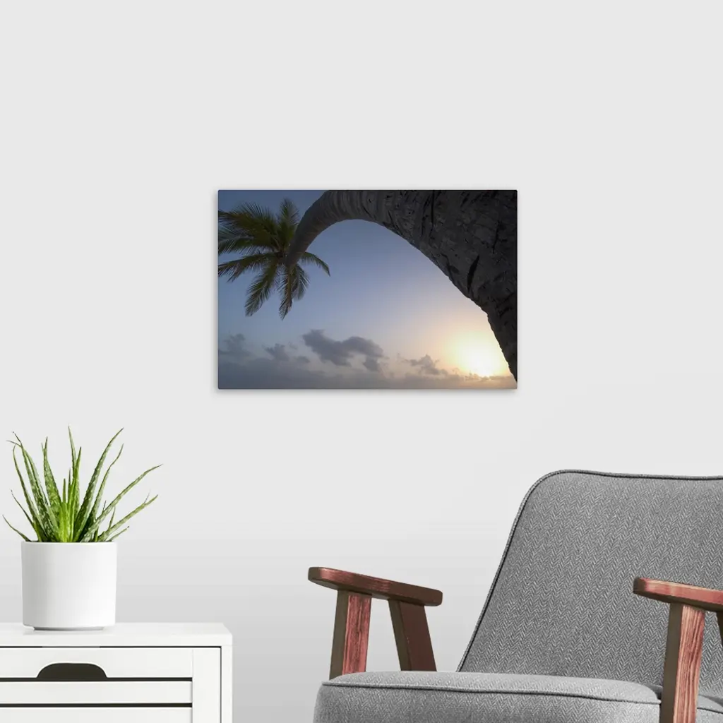 Curved Palm Tree At Sunset; Dominican Republic wall art for home and office decor. Discover canvas art prints, photos, mural, big canvas art and framed wall art in GreatBigCanvas.com's varied collections.