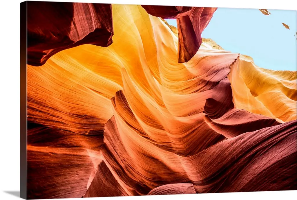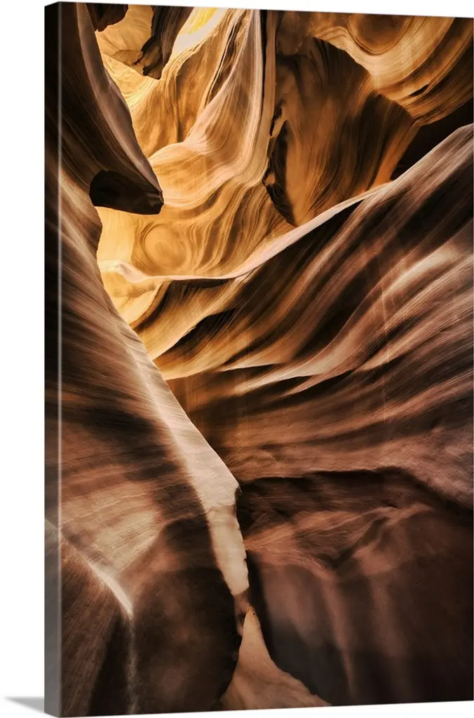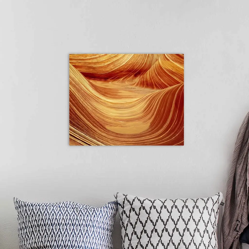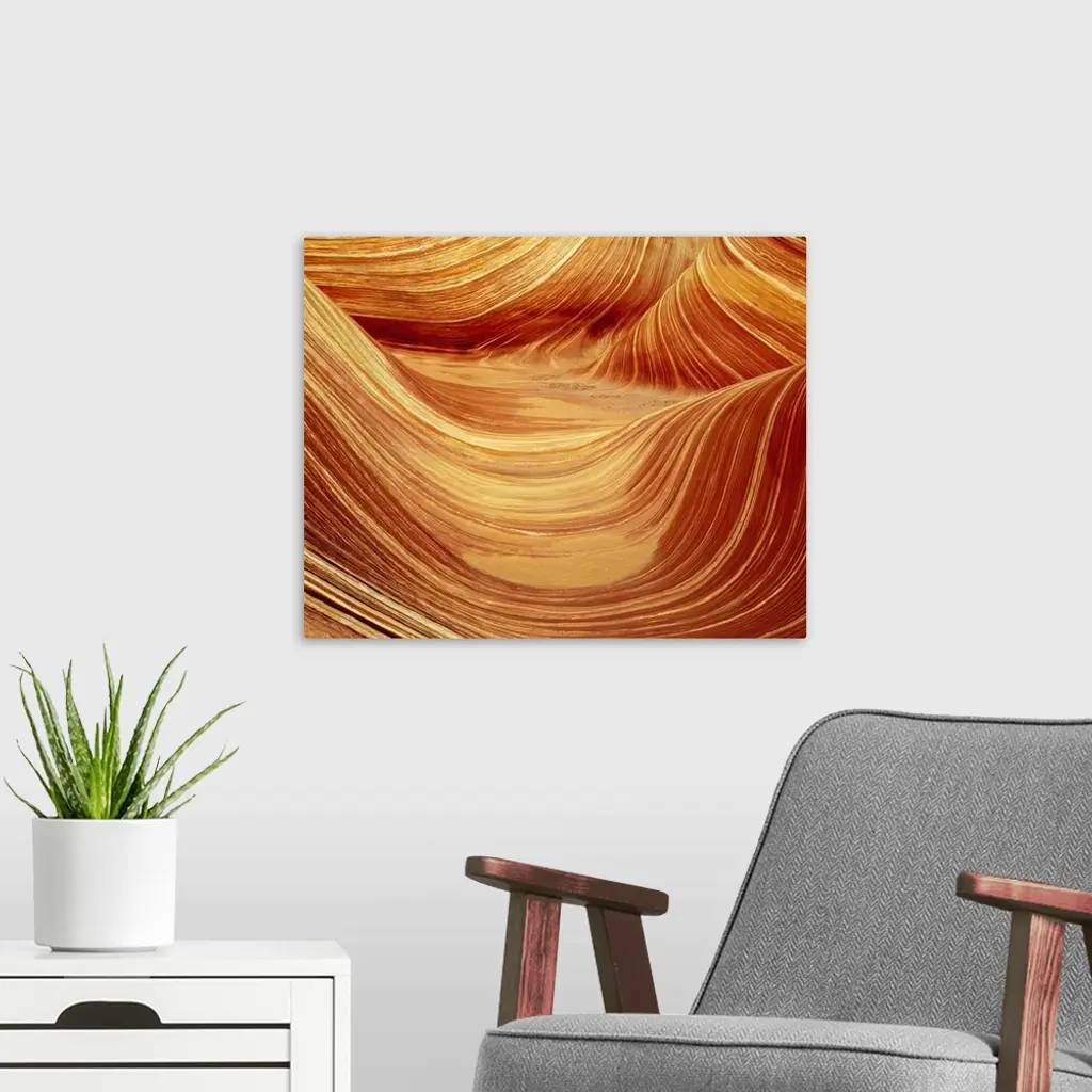 Large photograph of curved rock formations in warm tones.