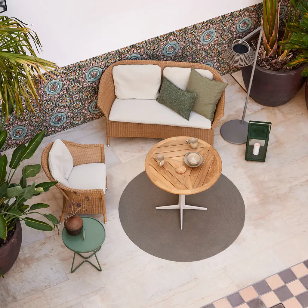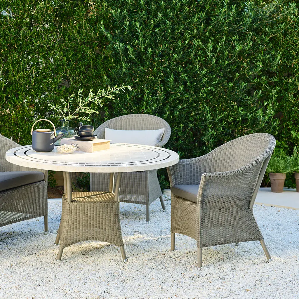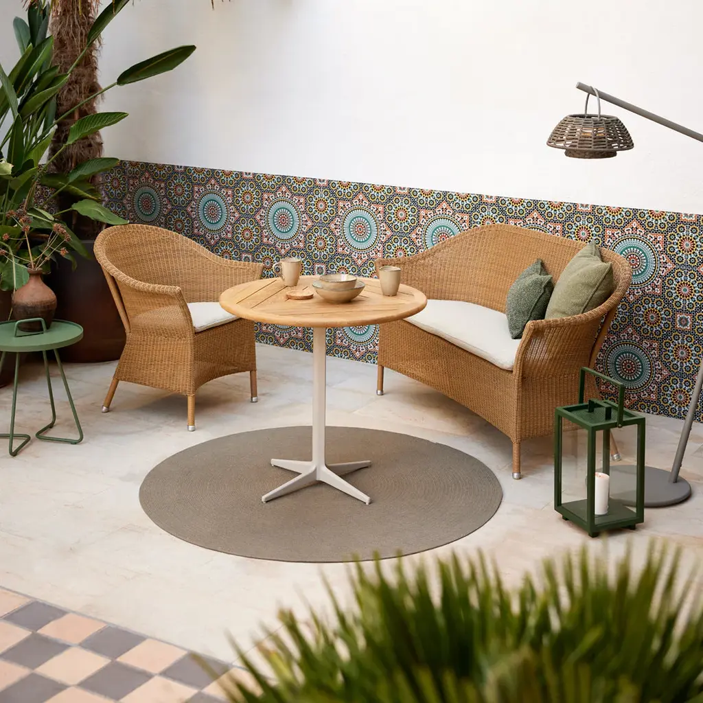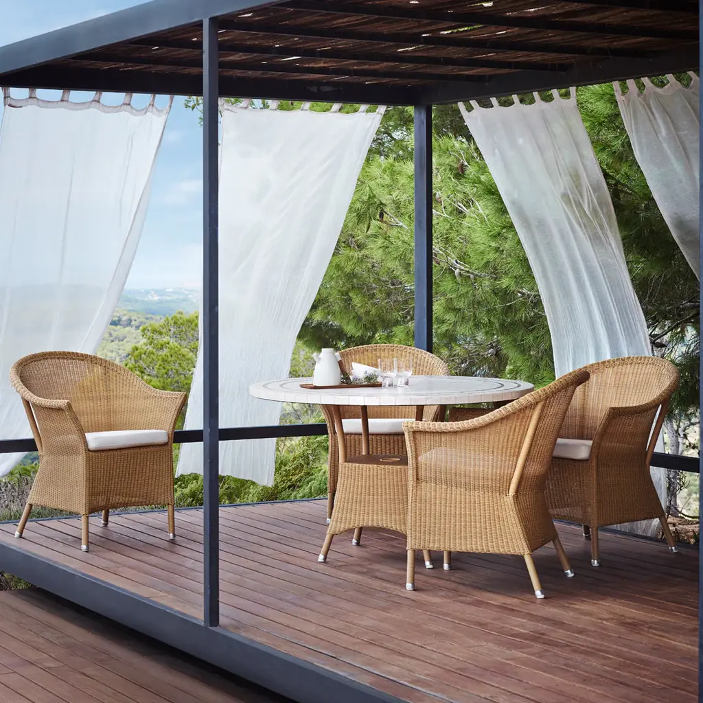 The Lansing garden chair has a classic and romanic country look. The spacious garden chair matches the beautiful loveseat sofa that both offers a great comfort while eating as well as providing the perfect relaxing position for long after-dinner gatherings. The lansing garden chair is handwoven by skilled craftsmen and comes in a warm natural weave. Note: Frame and cushion sold separately.