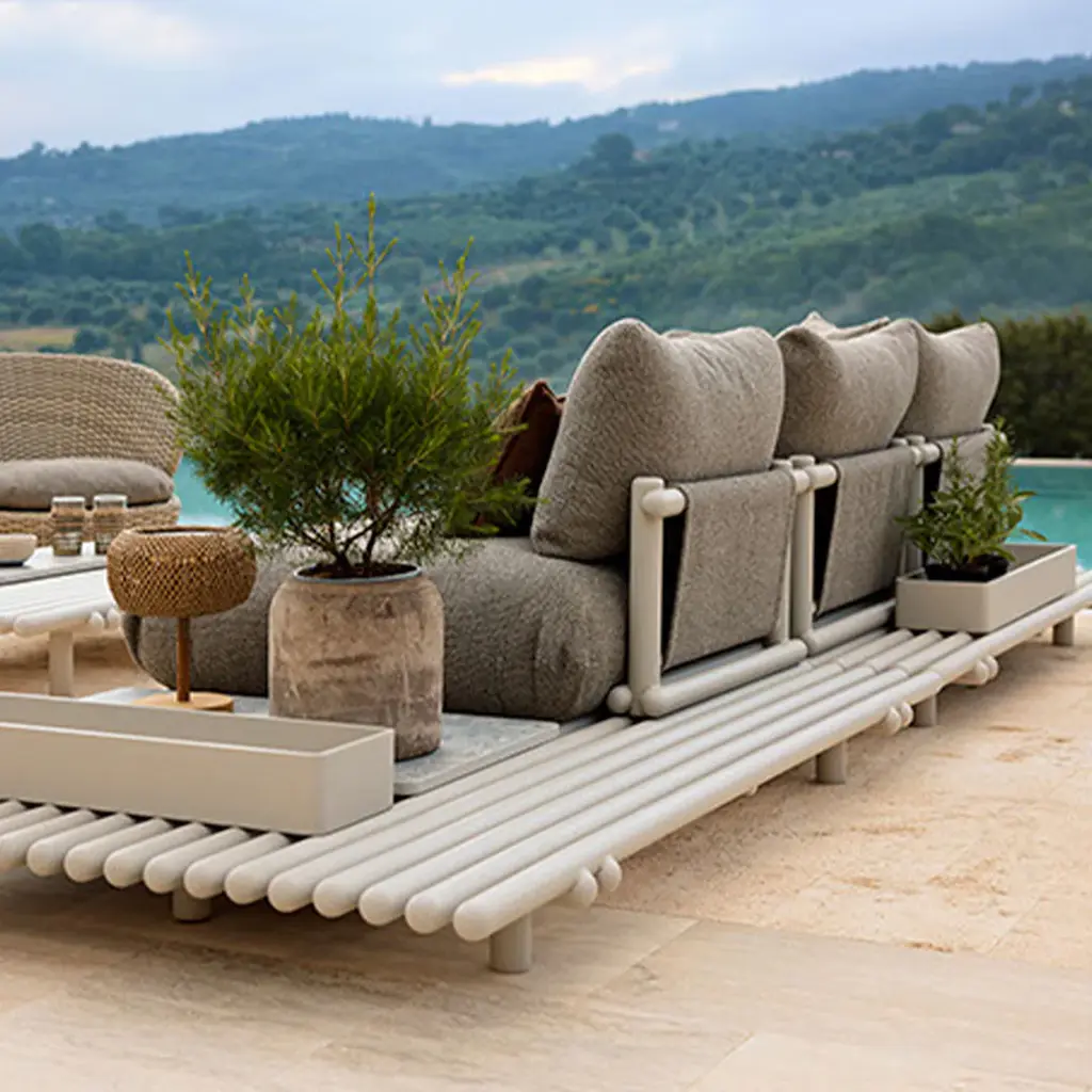 Sticks Platform Sofa is made for the outdoors. Inspired by sticks, the Sticks sofa brings elegance to your outdoor space. Its unique construction replicates the beauty of sticks while providing high comfort and durability. The cushions have the innovative Cane-line QuickDry + Airflow system, which helps to maintain high standards of comfort and good air circulation. In addition, the cushions dry quickly after a downpour. Experience the perfect blend of comfort and beauty. Use it alone or combine it with the rest of the Sticks series. Components sold separately.