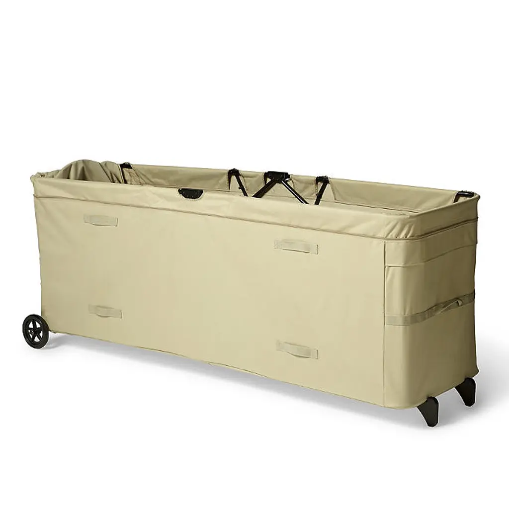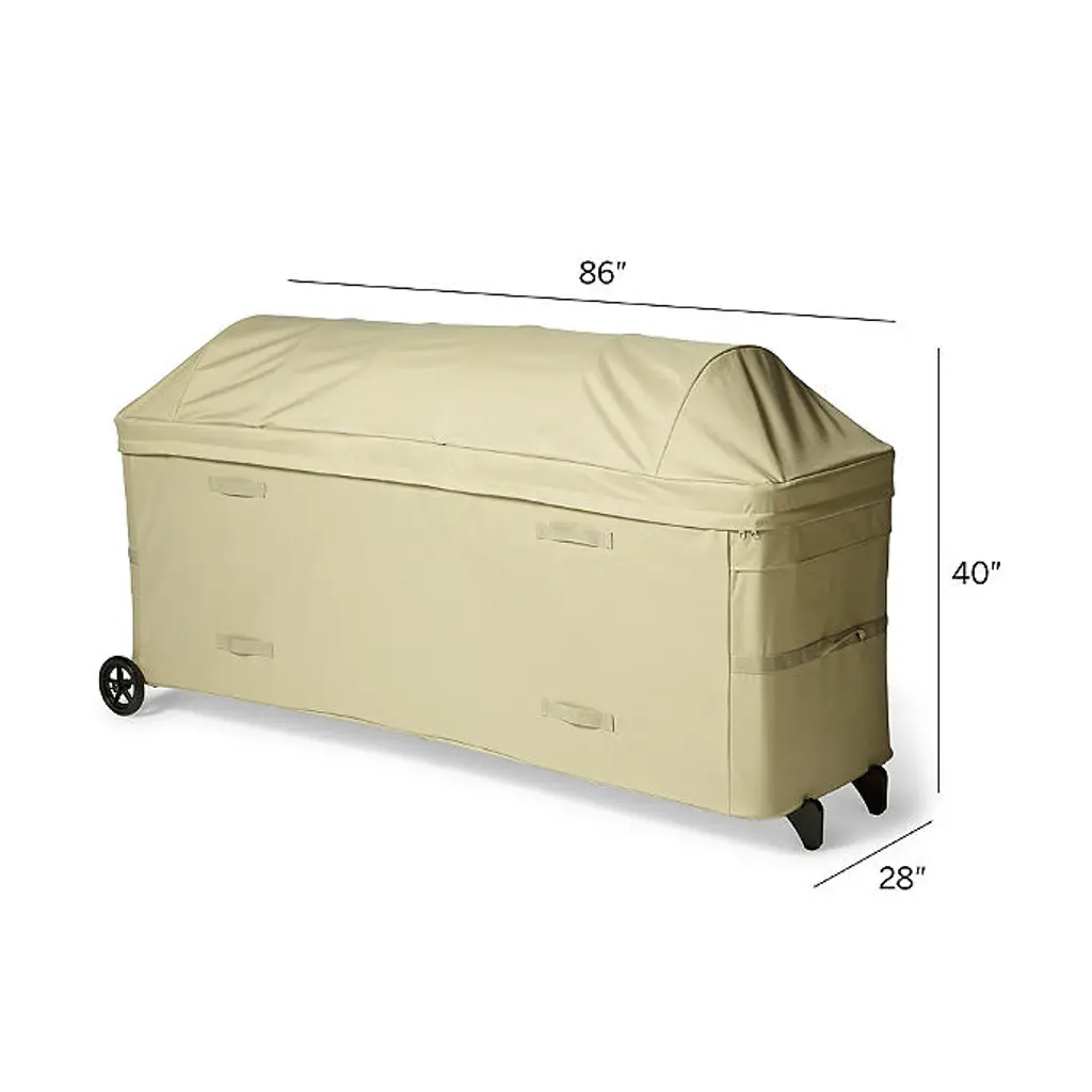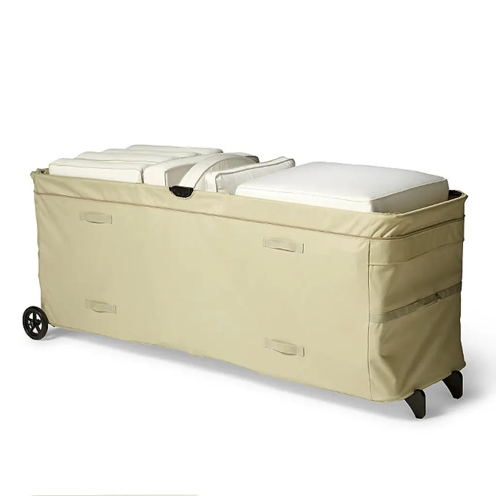 Keep your outdoor furniture cushions looking brand new and vibrant for years by storing them safely out of the way of harsh weather. Our durable Cushion Keeper® contains ample space for multiple cushions in varying sizes, and has a fitted, water-resistant cover. The collapsible design and easy-rolling casters allow it to be moved out of the way when you're entertaining guests outdoors. Extends the life of outdoor cushions by protecting them from damaging elements Durable, electroplated steel framework with lightweight, powdercoated aluminum components 600-denier oxford polyester with a PVC coating UV protected Collapses for easy storage Mold-injected 7" plastic wheels enable easy rolling Includes arched, fitted, water-resistant cover, and extra handles for movement Bottom includes mesh panel for ventilation Imported. At Frontgate, our primary focus is quality. We guarantee that every product we sell will stand up to the supreme test – our customers' satisfaction. To learn more about our policies, visit our Shipping & Processing, Returns & Exchanges and Warranty & Price Guarantee pages.