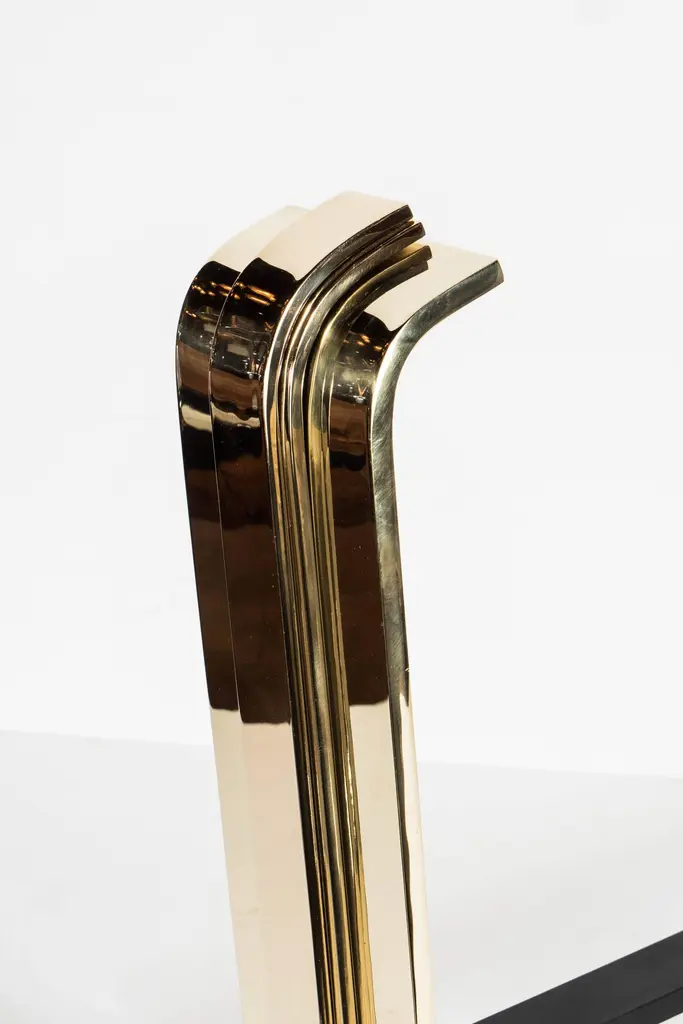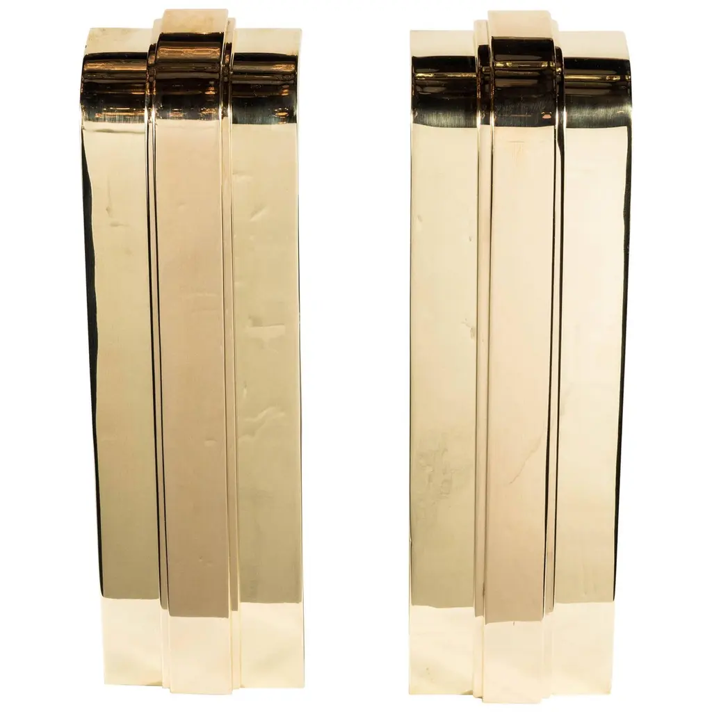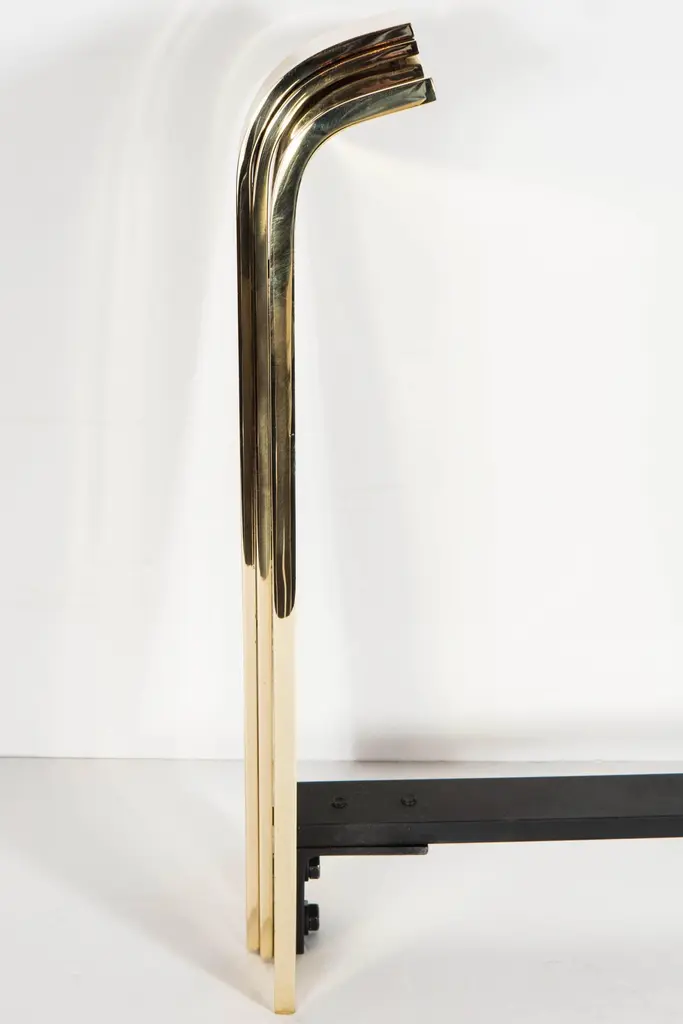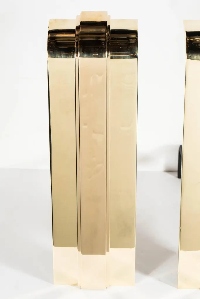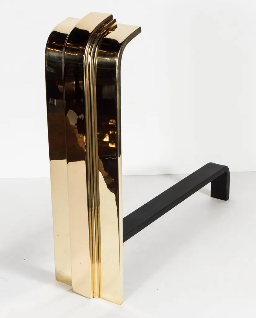 Custom Art Deco Style Skyscraper Andirons Displayed In Polished Brass