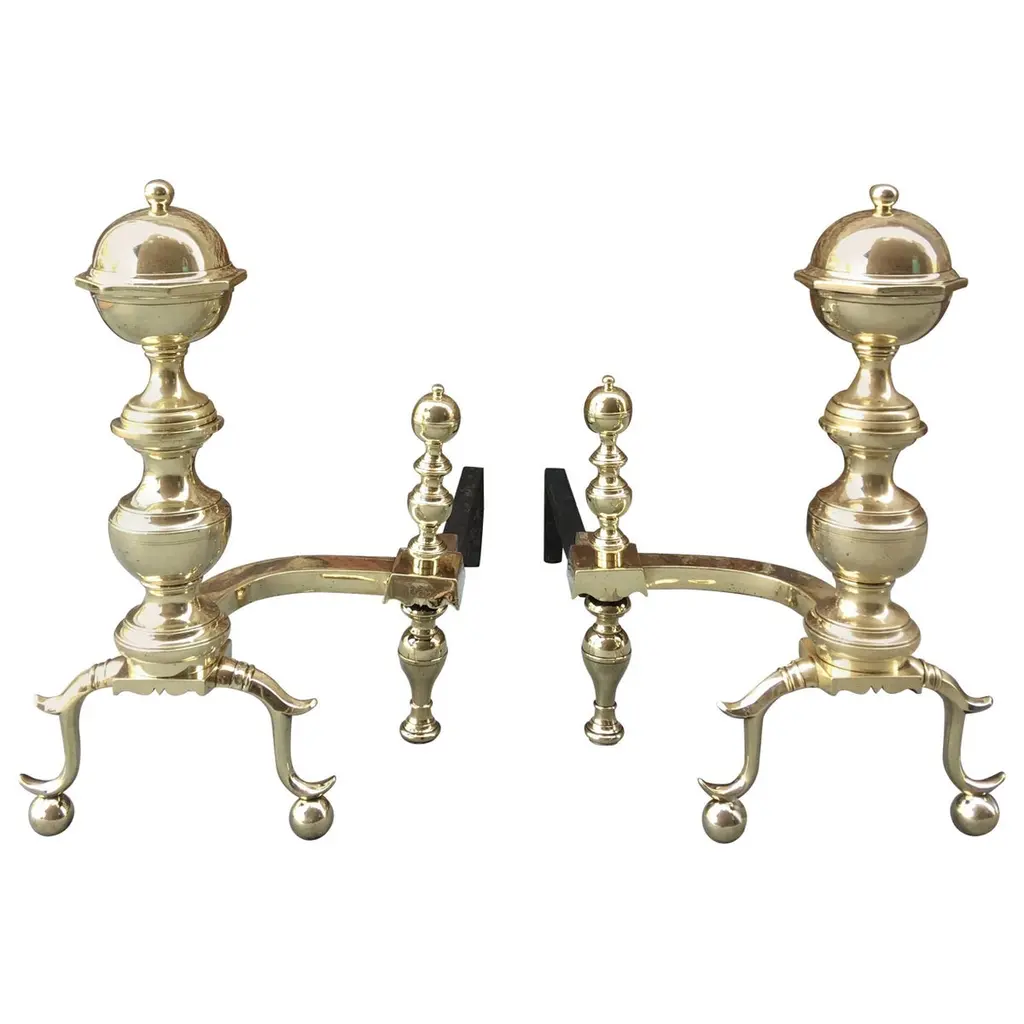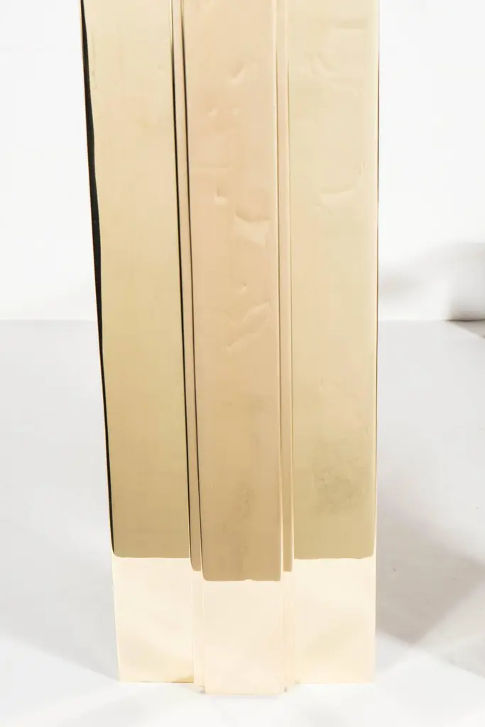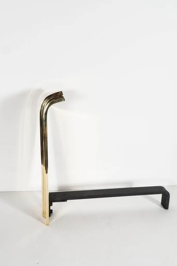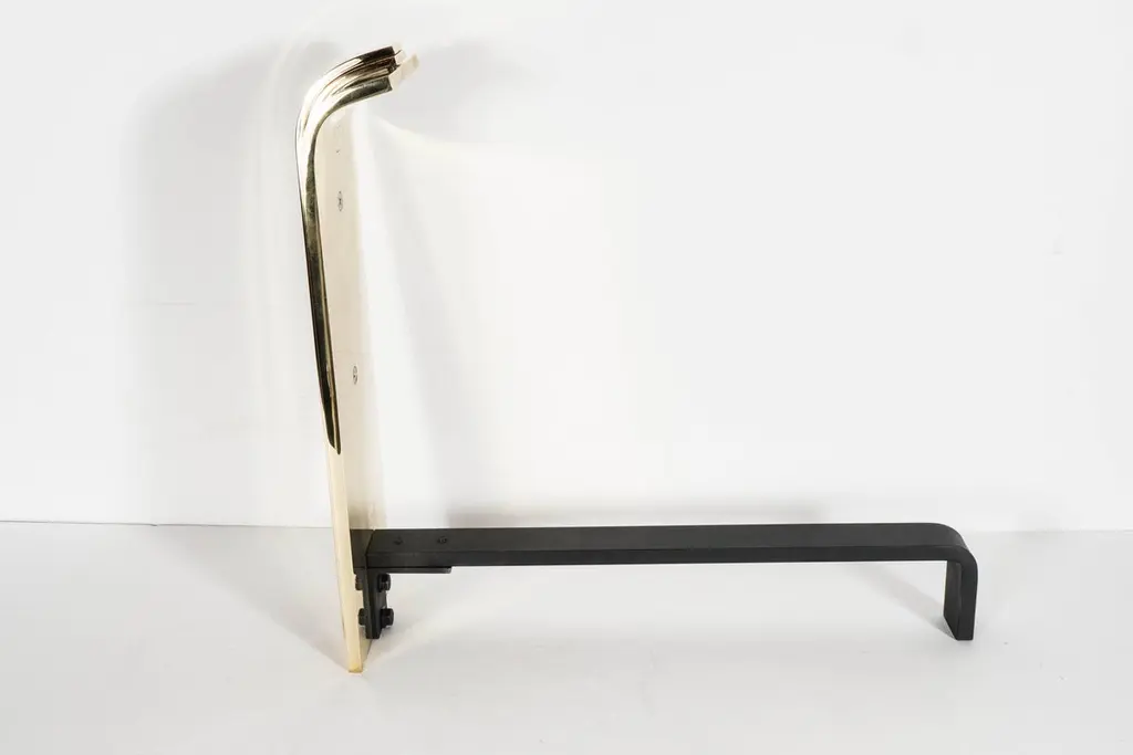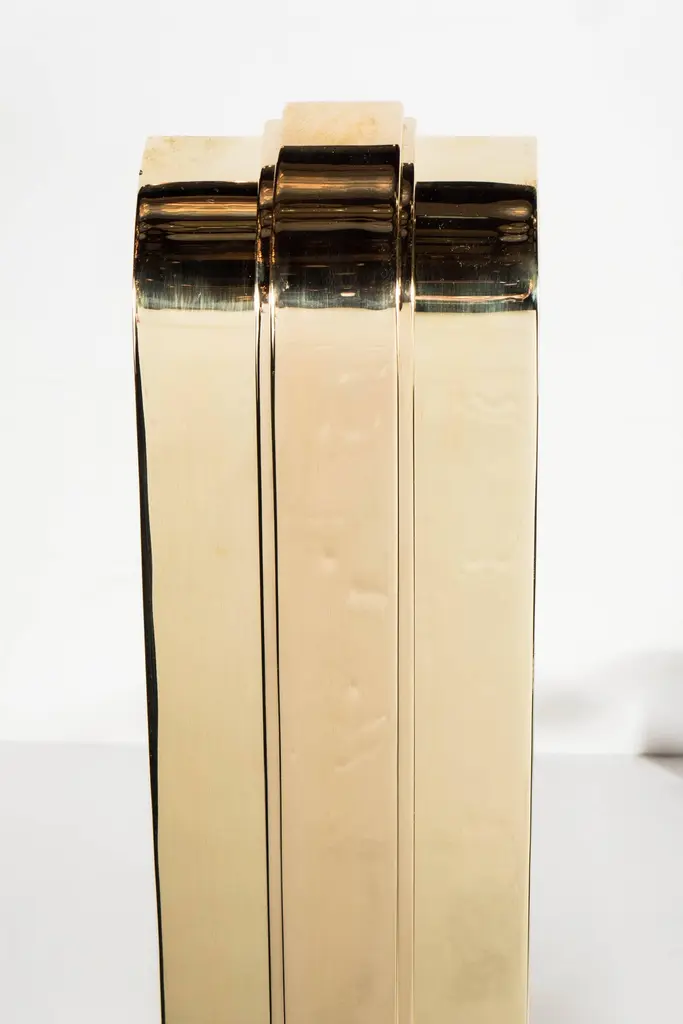 Custom Art Deco Style Skyscraper Andirons Displayed In Polished Brass