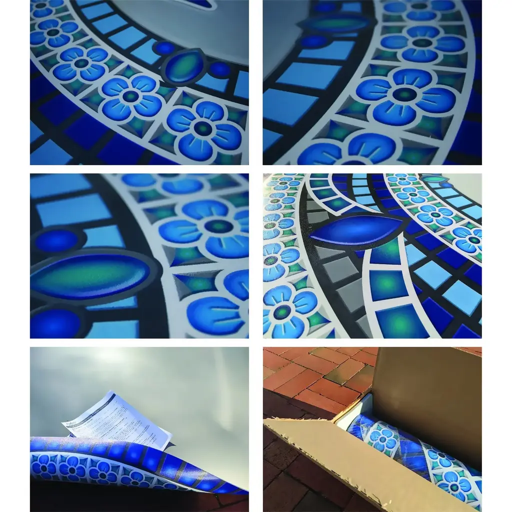 We have created a NEW COATING for the top of our mats that is 100% Fade Resistant. This new manufacturing process will give your poolmat the vibrant colors for many pool seasons and will not fade or peel.Decorate Your Pool With A Custom Poolmat