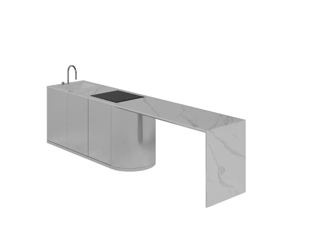 Zest Kitchen The Zest kitchen combines elegance and modernity in every detail. With a minimalist stainless steel structure and marble worktops, it becomes a highlight that transforms any outdoor cooking area. Designed to withstand and respond to all the needs of an outdoor kitchen, durability and resistance are the Zest kitchen's greatest promises, using only materials with excellent performance. Available in various combinations of finishes and accessories. The whole design of this contemporary outdoor kitchen was developed according to the following structure: - Top: Marble;- Structure: Plated stainless steel;All Myface materials are from premium suppliers, engineered to offer the best performance possible outdoors.Water, Mold, Mildew, UV and Fading resistance are some of the characteristics that you can expect from both materials, that are available in a wide array of colors and patterns.