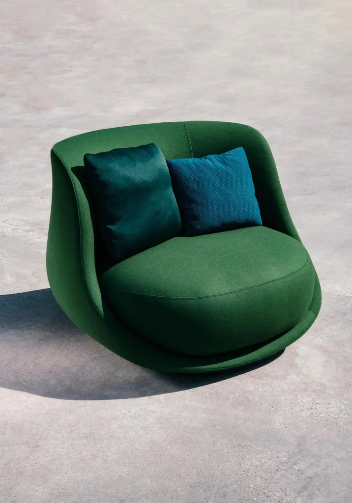 Liaison is the story of a bold shape, a shell designed to shelter a soft seating cocoon. With generous proportions and an inviting look, can count on the support of a well-defined, meticulously designed and distinctly curvy outer envelope.With generous proportions and an inviting look, can count on the support of a well-defined, meticulously designed and distinctly curvy outer envelope. Built upon a thin metal base, Liaison’s legless design inspires new ways to sit and lounge in residential and hospitality environments. Like anest enveloping the user with its warmth, the design emphasises comfort with a broad range of fabricor leather upholstered cushions.Dimensions:3 seater sofa W2 457 x D1 055 x H775 mm seat 400 mm, 2 seater sofa W1 757x D1 055 x H775 mm seat 400 mm, armchair W1 057 x D1 052 x H775 mm seat 400 mm.