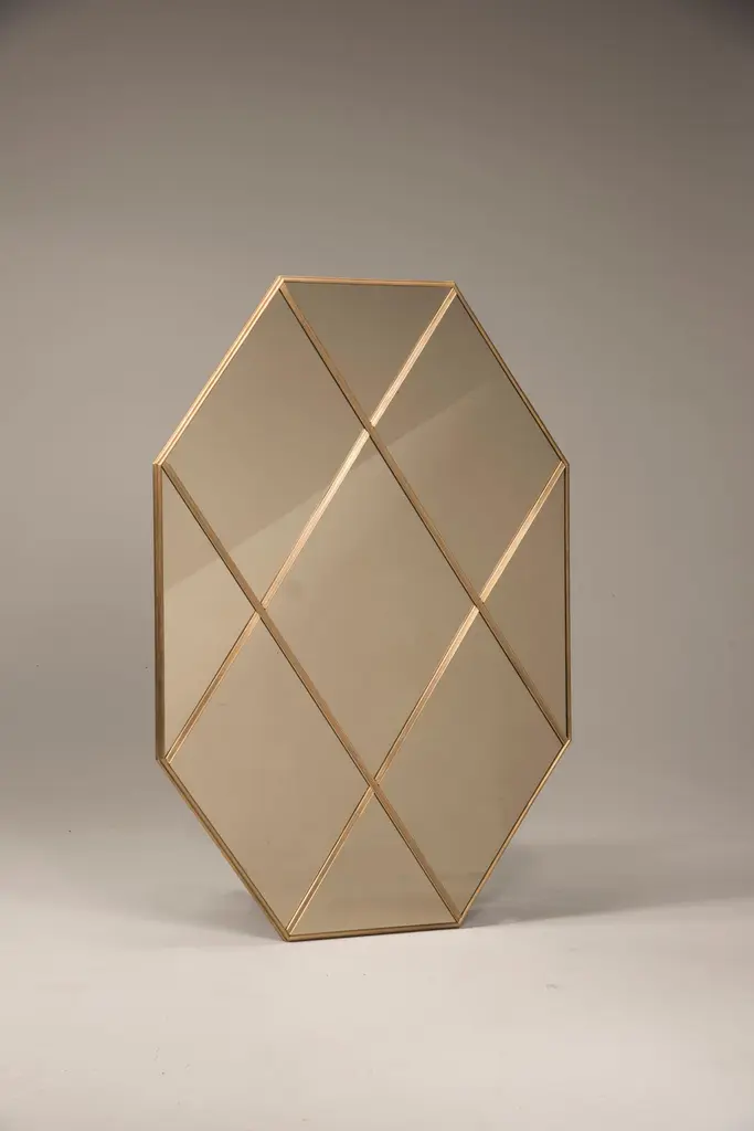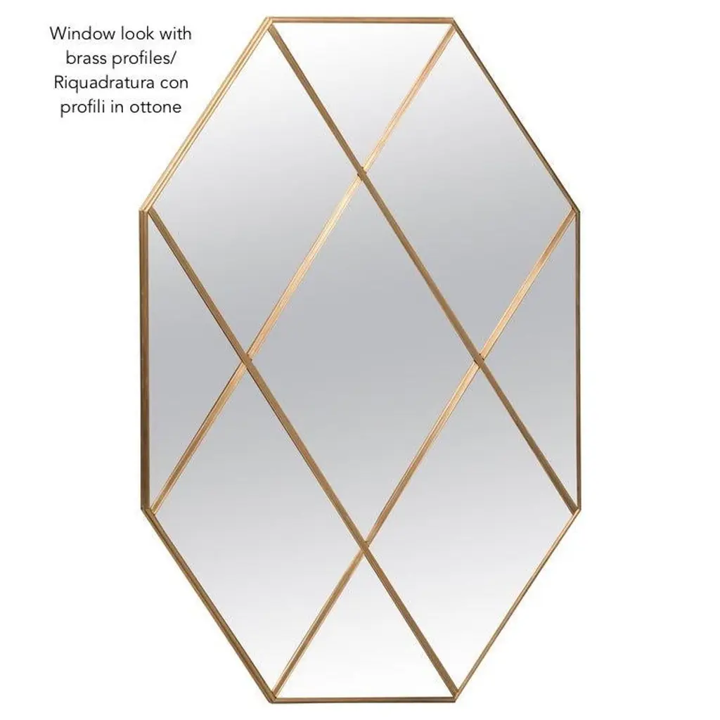 Pescetta presents its new collection of contemporary customizable brass frame mirrors. With frame made of brass and multi panels window look, these mirrors replicate the idea of early 20th century Art Deco style. They suit both modern spaces which need a touch of elegance, both very classical rooms which needs a wall decoration. Each mirror is a unique handmade piece, characterized by Italian quality and taste. Lead time 20 working days. Price and picture refers to a mirror with following characteristics:FRAME: Brass, aged effect , doble profileSHAPE: OctagonalMIRROR: bronzeACCESSORIES: brass bars to create the window effect.SIZE: 100 X 70 cm / 39" x 27" Customizable. Other size, shape, finishings available.Design your mirror! Many details are customizable: Customize the Frame -Define Shape and Size -Choose shiny or Vintage Brass-Select Simple or Double Profile FramePersonalize the mirror -Divide the mirror into panels, to have a window look with studs or brass profiles-Choose the kind of mirror: Classic, Beveled, Smoked, Bronze or Aged effect. -Add accessories such as lights, hangers or studs.. Price refers to a mirror size: W 39.3" / 100 cm and H 55.11" / 140 cm. Type of glass:a) Classic: normal silver color mirror. b) Smoked: Dark grey distortion of reflected colors.c) Bronze: Bronze distortion of reflected colors.d) Black and white: Classic silver base and several small spots. Most used one, light age effect, clear vision, no distortion of reflected colors. e) Black and white/bronze: bronze base and several small spots. Bronze distortion of reflected colors.f) Antique silver: strong age effect, silver base with large spots as per mirrors from 18th century. Blurred vision in the complex. g) Saturn: medium age effect, silver base and several large light spots. Reflected colors are more grey and dark.h) Venetian: several light spread big spots which gently turn reflected colors into powder pink tone.