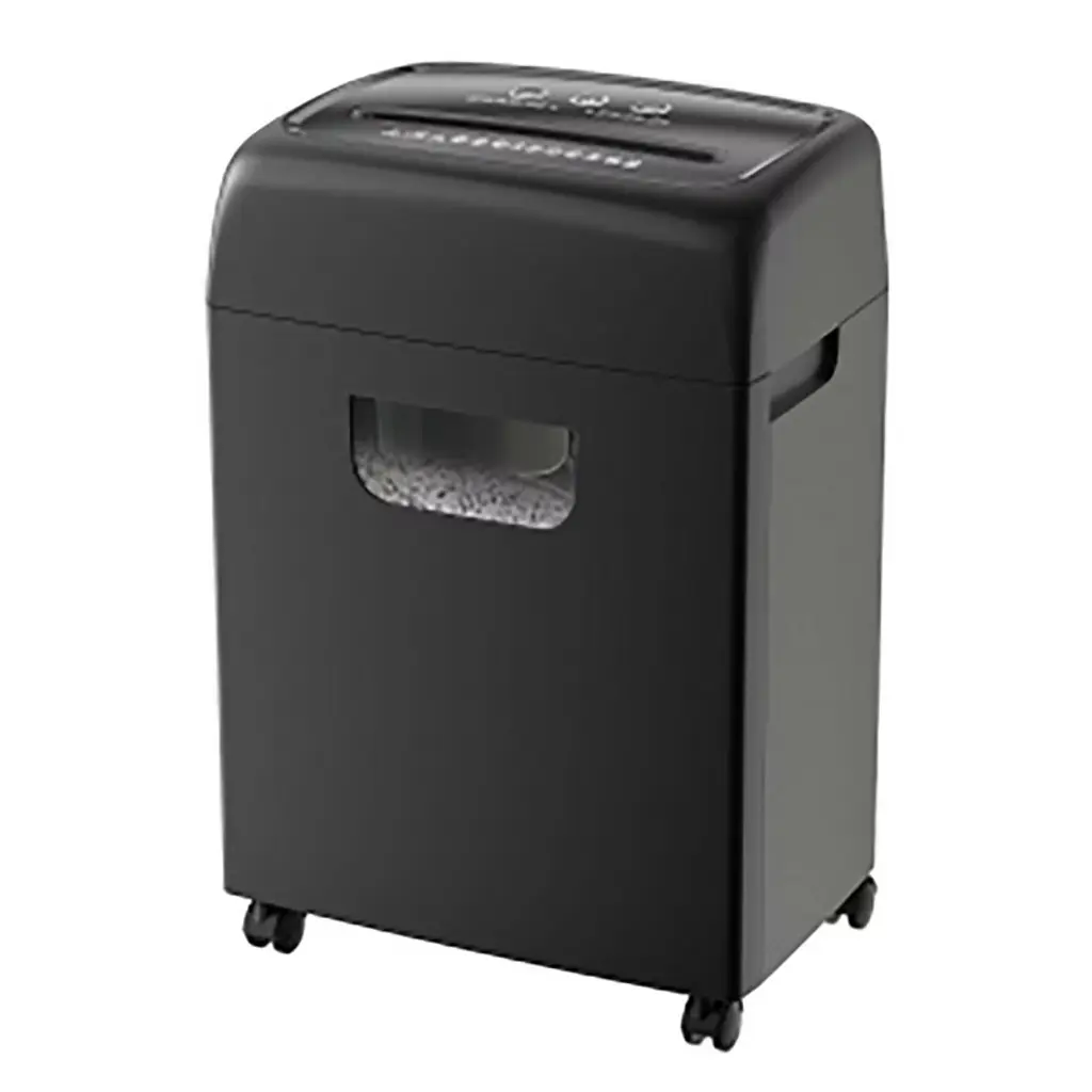 Description: Name: Paper Shredder Main color: Black Main material: ABS+PC Maximum Paper Capacity: 18 sheets of 80g A4 paper Shredding Speed: 2.0m/min Security Level: P4 Shredder Bin Capacity: 5.28 gallons Shred Size: 4x33mm Low Working Noise: 62dB Overload Protection: Yes Overheat Protection: Yes Auto Start/Stop: Yes Power Cut-off Protection: Yes Product size Assembly length (in.) : 13.78 Assembly width (in.) : 9.69 Assembly height (in.) : 20.43 Weight in pounds: 23.54 Packing list: Paper shredder x 1