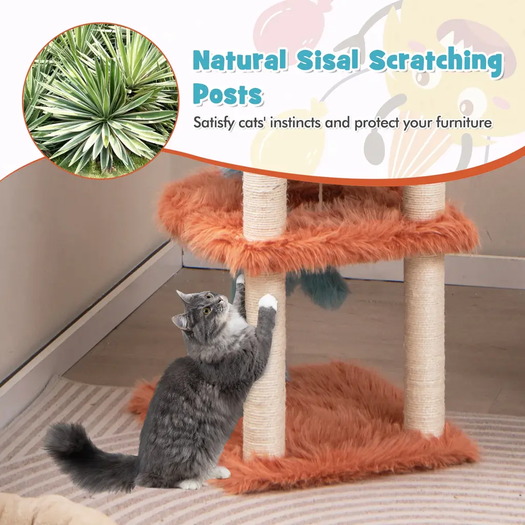 Specifications:Description:This versatile cat tree is designed for ultimate comfort, featuring a unique hanging condo that provides a secure, elevated space for your cat to rest or relax. The condo includes two access holes at the top and front, offering easy entry and exit. Equipped with four natural sisal-wrapped scratching posts, this tower allows your cat to scratch, stretch, and release their natural instincts, while the scratch-resistant sisal is durable and safe for extended use. The soft, long plush fabric covering the cat tree creates a cozy and inviting surface for your cat to snuggle up on, while the breathable fabric inside the condo ensures a comfortable environment. For added entertainment, this climbing stand includes playful plush dangling toys shaped like monster feet, designed to engage your cat’s instincts for pouncing, swatting, and active play.Key Features:● Ultimate Comfort: This cat tree comes with a unique hanging condo, providing a secure and elevated haven for your furry friend to sleep or relax. And there are 2 cat holes on the top and front for easy access.● Natural Sisal Scratching Posts: The cat tower includes 4 fully-wrapped scratching posts, allowing cats to grind claws and release instincts. Moreover, it is covered by natural sisal ropes, which are scratch-resistant, wear-resistant, safe and healthy.● Ultra-Soft Materials: The cat tree is covered in luxurious long plush fabric, ensuring a gentle and plush surface for your cat to snuggle up. And the condo interior adopts breathable fabric, providing a soft skin touch.● Interactive Fun: The cat climbing stand comes with amusing plush dangling toys shaped like monster feet, adding a playful touch. The toys could stimulate your cat's natural instincts for pouncing and swatting, keeping them entertained and active.