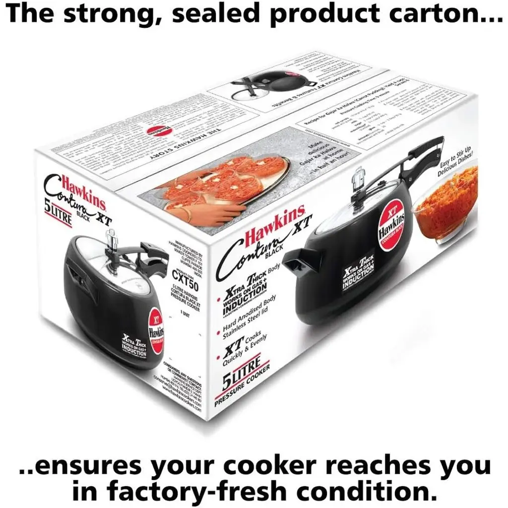 The Contura Black XT pressure Cooker comes with a Xtra Thick Body that helps in cooking the food quickly and evenly. The beautiful, durable black finish given by 60 microns thick hard anodising has two benefits. It makes the pressure cooker absorb heat faster making it more energy-efficient. And your pressure cooker stays looking new for years. The cooker body is given the right curvature, which has three benefits: food is easy to stir during the cooking that is done prior to pressure cooking; this helps prevent the food from sticking or burning and clean-up is so easy! For difficult dishes which require a lot of stirring, the Contura with its rounded sides is an ideal pressure cooker.