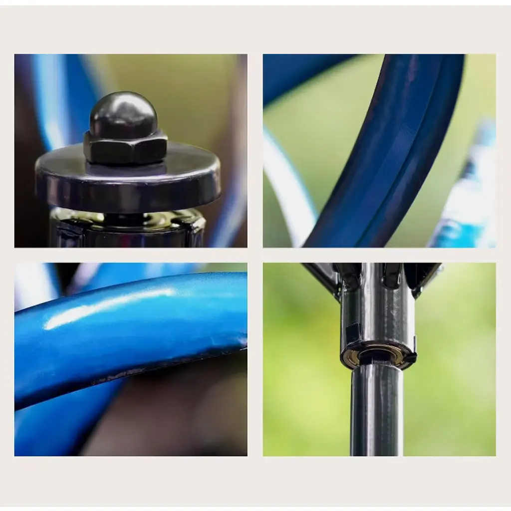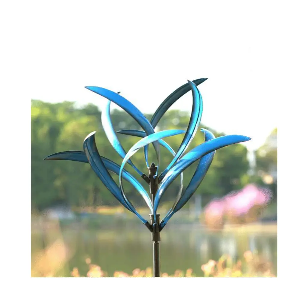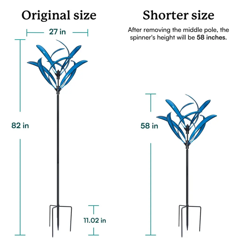 The Blue Magnolia Wind Spinner features an elegant magnolia flower design in a soothing blue hue. It spins gracefully in the breeze, bringing a touch of serene beauty and natural charm to your outdoor space.