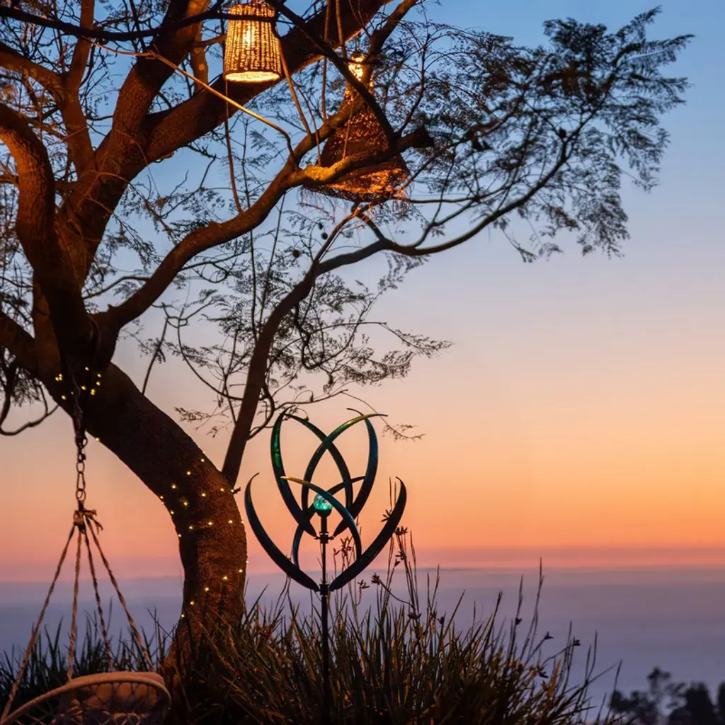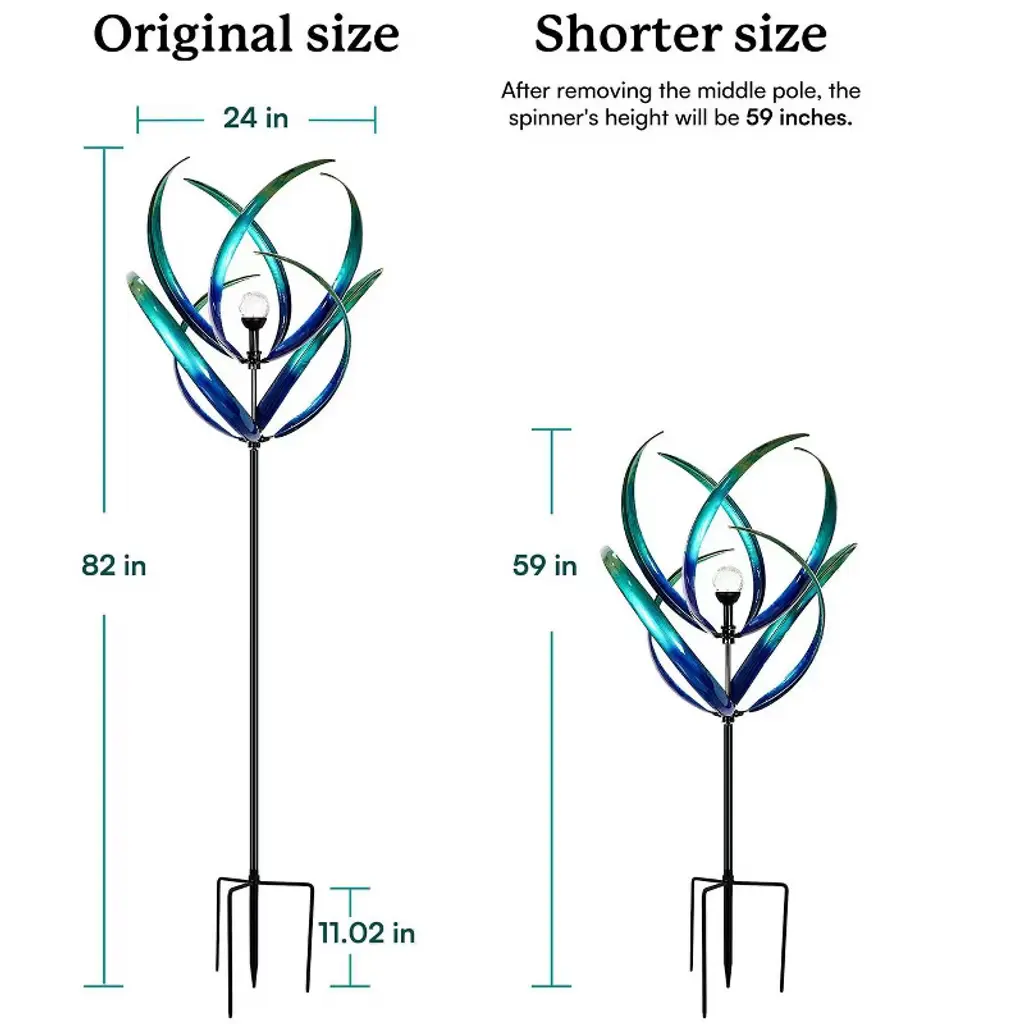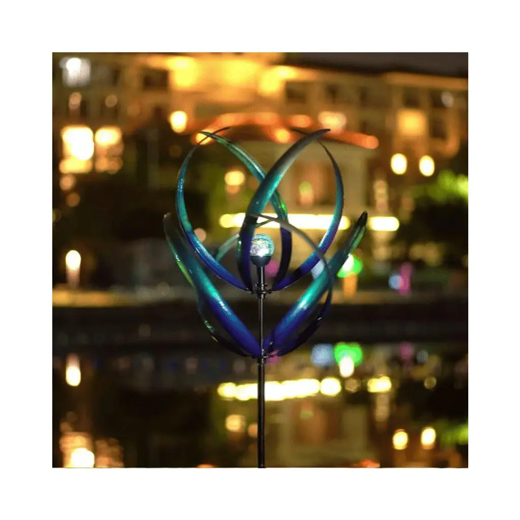 The Dawn Magnolia Solar Wind Spinner features blades shaped like magnolia petals, painted in soft, dawn-inspired hues that evoke the first light of morning. Solar-powered lights illuminate its elegant form at night, creating a enchanting and eco-friendly display for your garden.