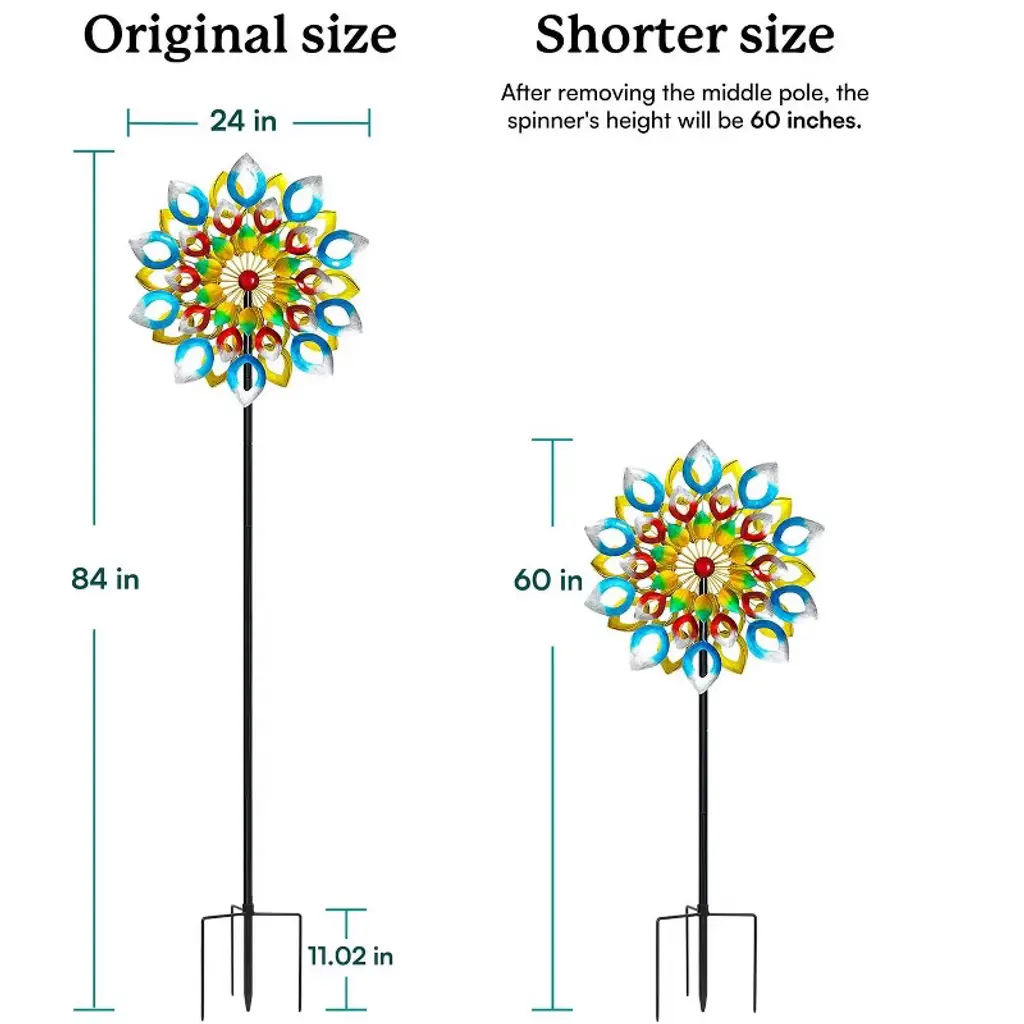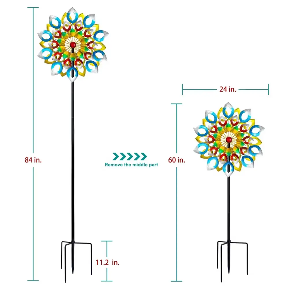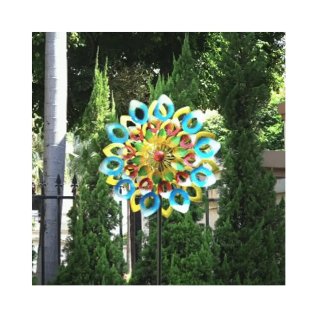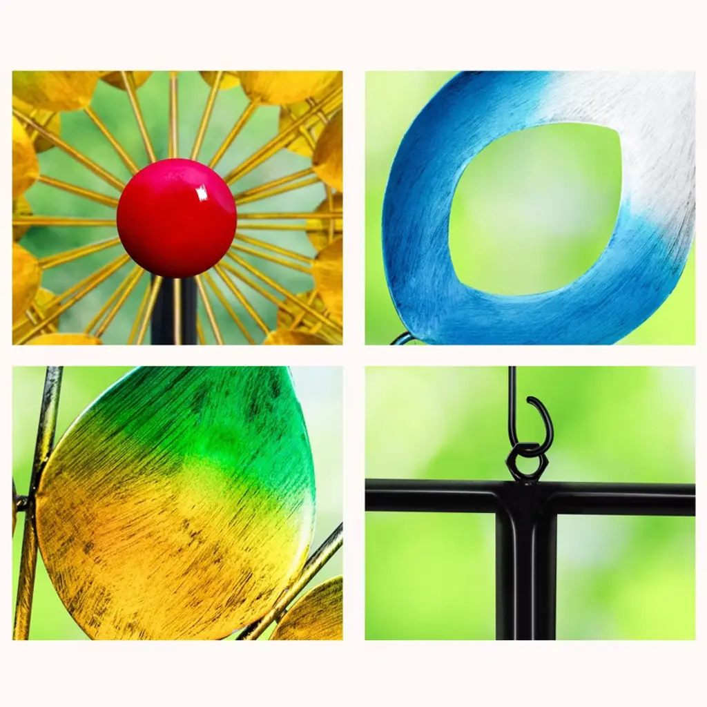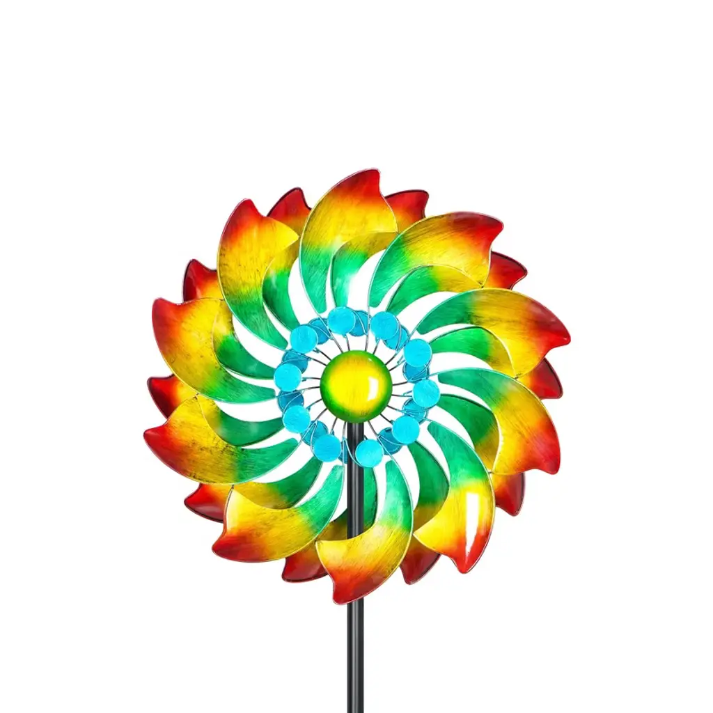 The Colorful Whirlwind Wind Spinner is a dynamic and eye-catching outdoor ornament that whirls with a burst of vivid colors, adding a lively and playful touch to any garden or yard.