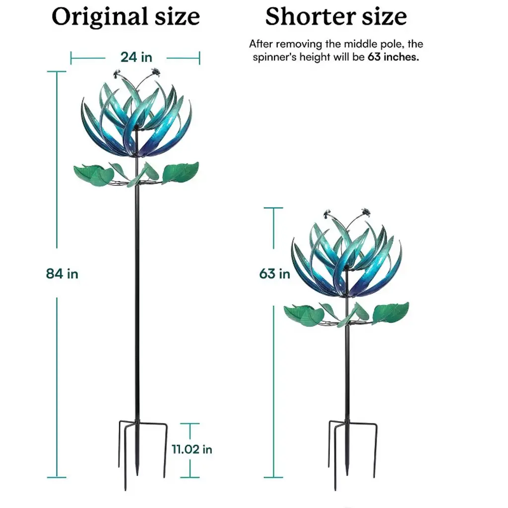 The Dawn Flower Wind Spinner features a stunning design reminiscent of a lotus flower, adorned in soft, dawn-like colors that evoke the tranquility of early morning light. Its graceful spinning motion adds a serene and captivating touch to any outdoor space, enhancing the beauty of your garden.
