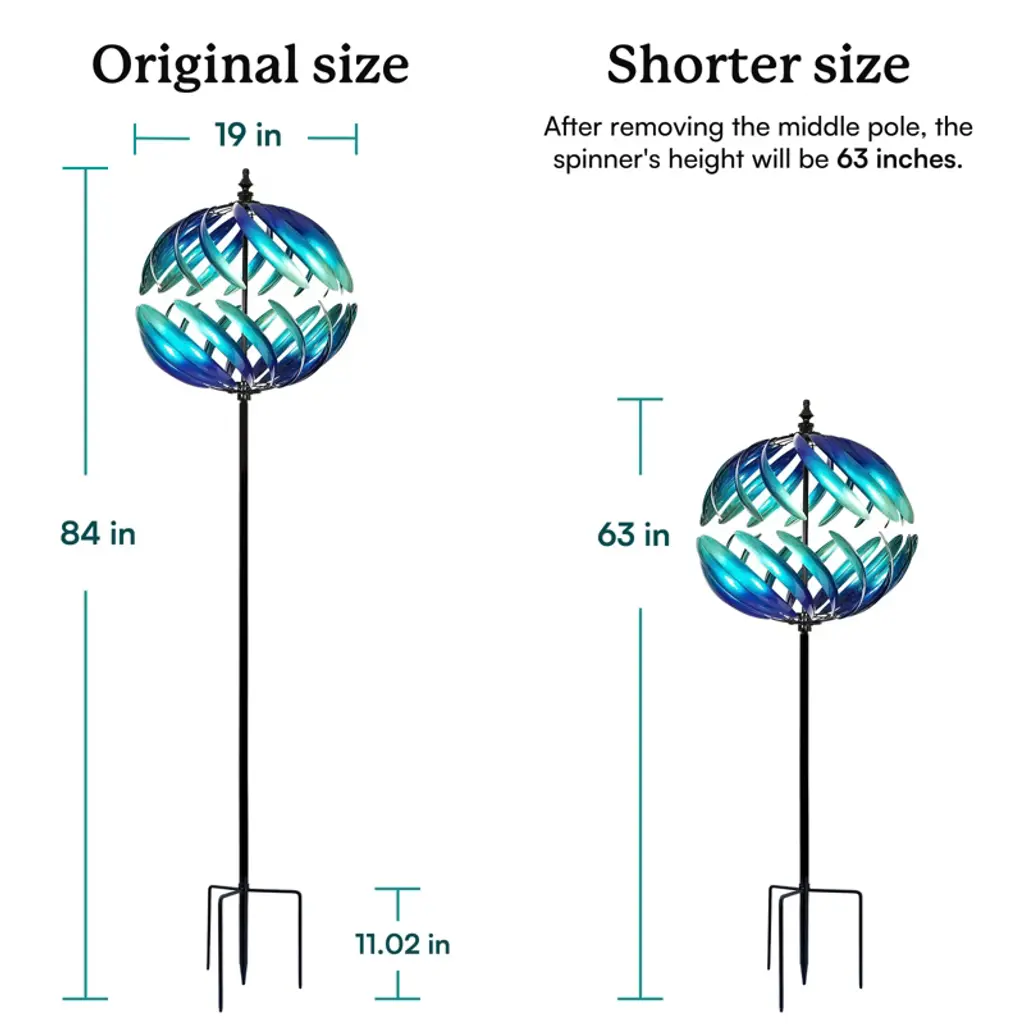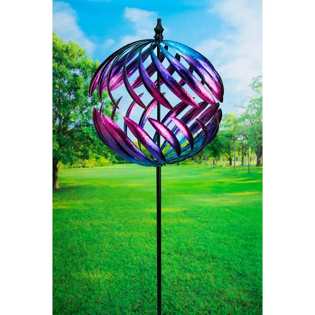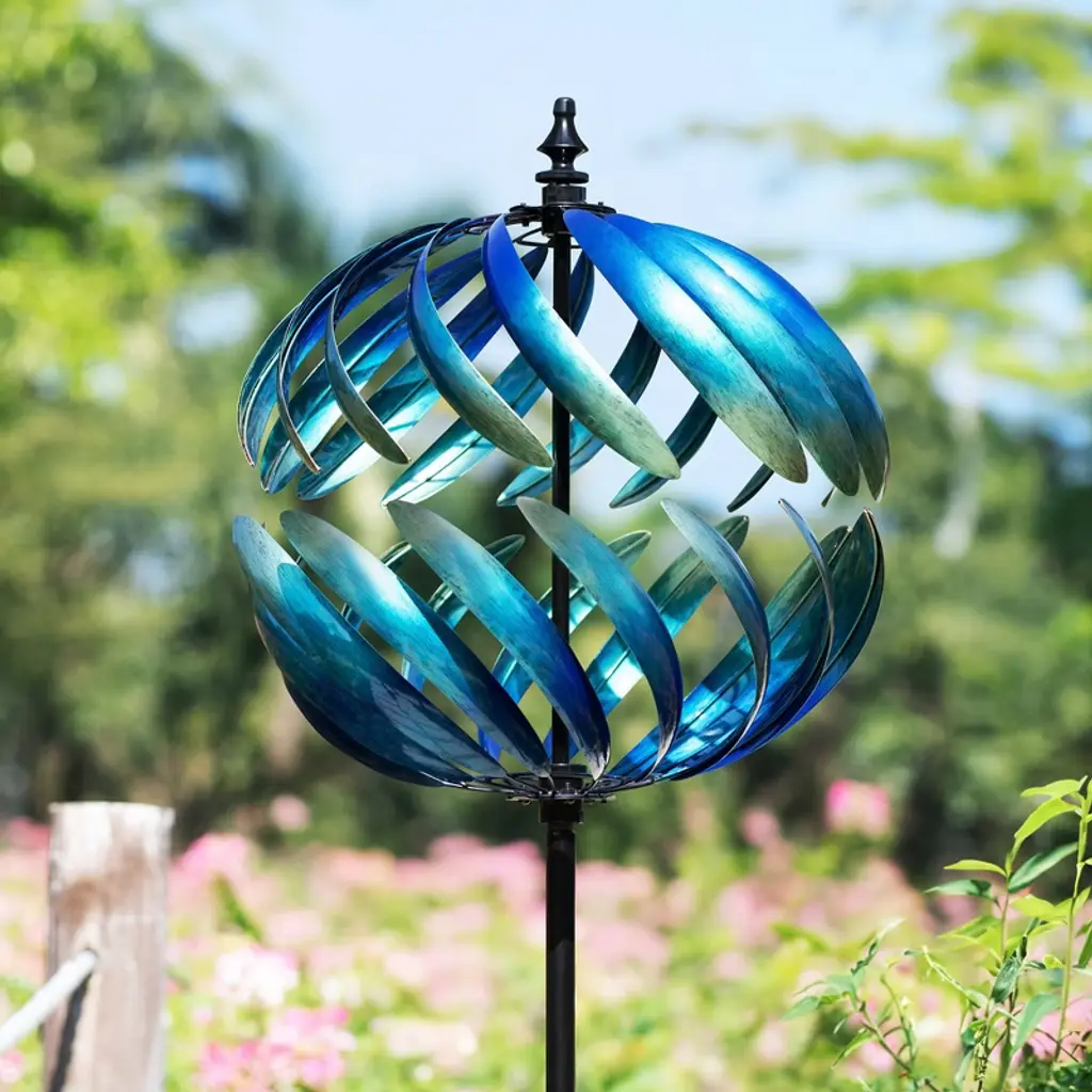 The Dawn Globe Wind Spinner boasts a dawn-like azure gradient, with an upper and lower hemispherical shape, creating a serene and captivating visual effect.