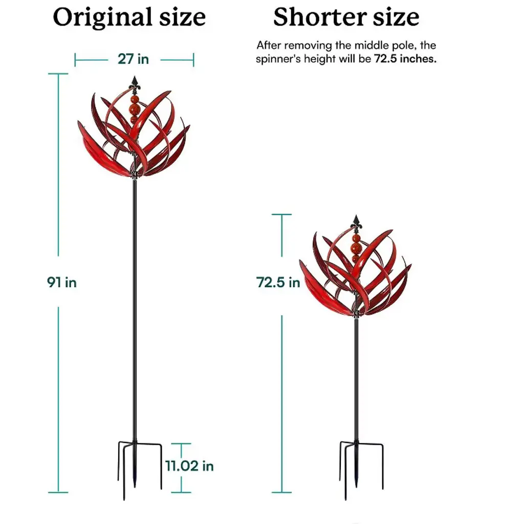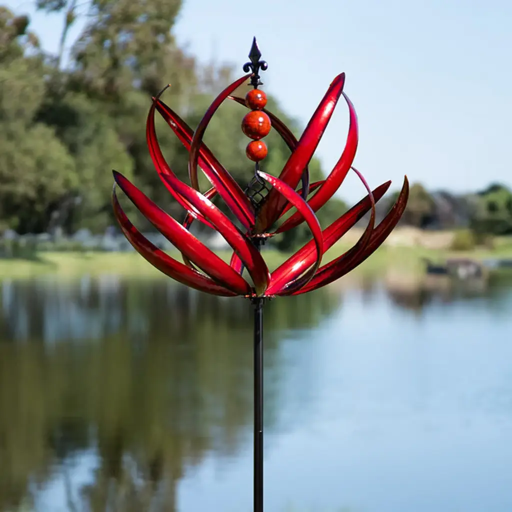 The Crimson Lotus Wind Spinner features a stunning red lotus design, with intricately crafted petals that spin gracefully in the breeze. Its bold color and elegant motion add a vibrant and sophisticated touch to any garden or outdoor setting.