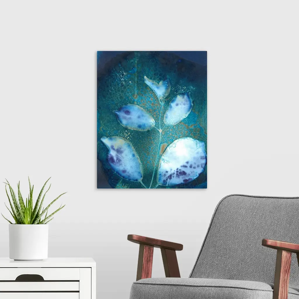 Cyanotype Leaves III wall art for home and office decor. Discover canvas art prints, photos, mural, big canvas art and framed wall art in GreatBigCanvas.com's varied collections.