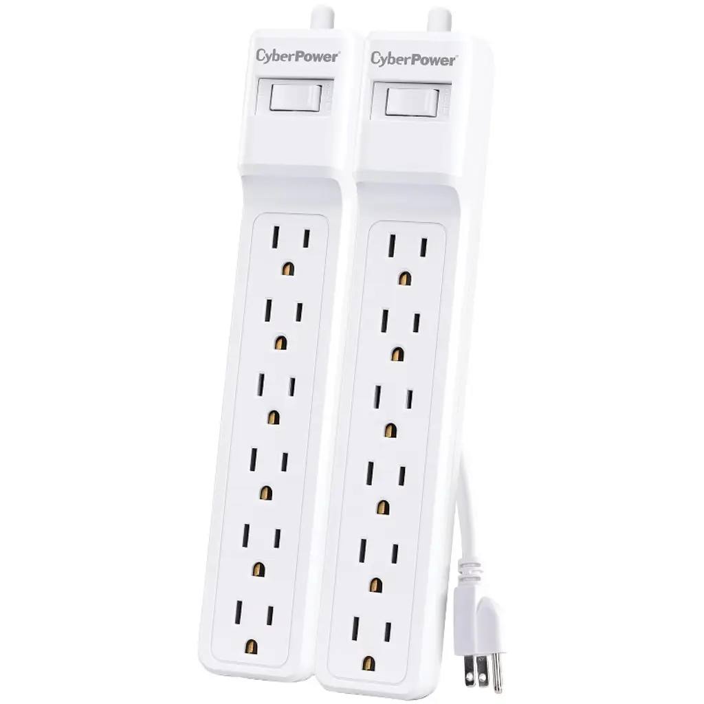 Cyberpower® 6-ac Outlet Essential Series Surge Protector Power Strip, 2-ft. Cord With Straight Plug, Mp1073ss, 2 Pack In White
