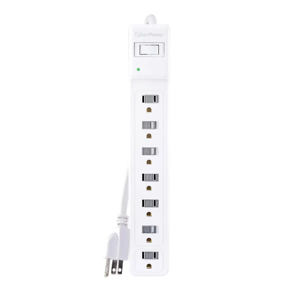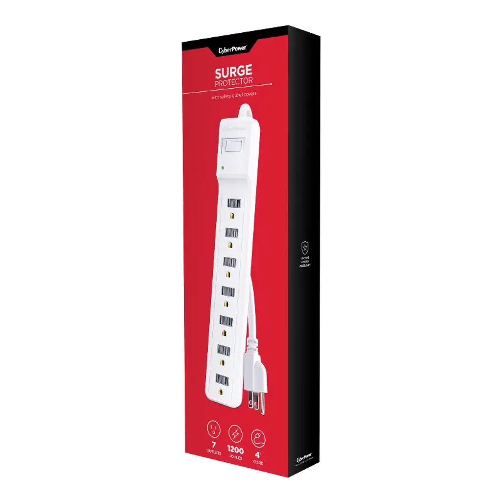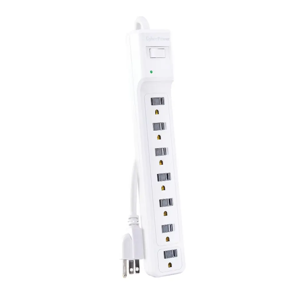 Cyberpower® 7-ac Outlet Essential Series Surge Protector Power Strip With Sliding Covers, 4-ft. Cord With Straight Plug, B704 In White