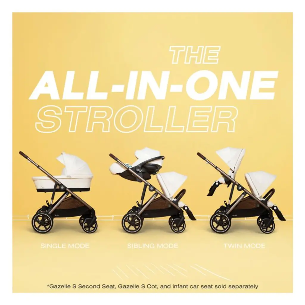 With the CYBEX Gazelle S2 Second Sibling Seat, you can convert the Gazelle S 2 Stroller (sold separately) from a single to a double that can carry both of your kiddos with the same level of comfort. The full-size Gazelle S seat can be used in parent-facing or forward-facing mode, and it can be attached to the stroller's upper or lower position. Its one-pull harness helps you quickly secure your little onesa game-changer when you're strapping in two!Check out our Types of Strollers Guide to learn more.