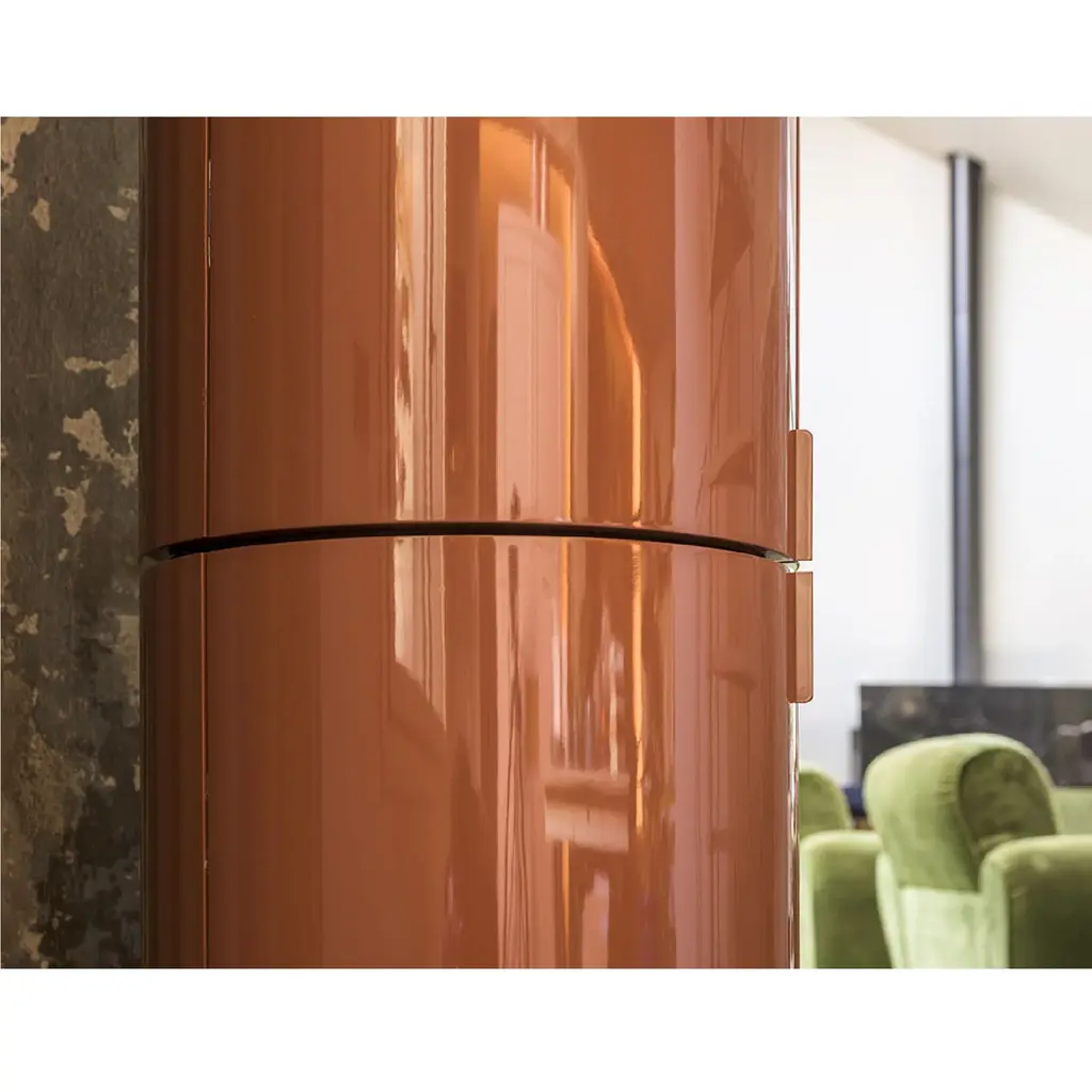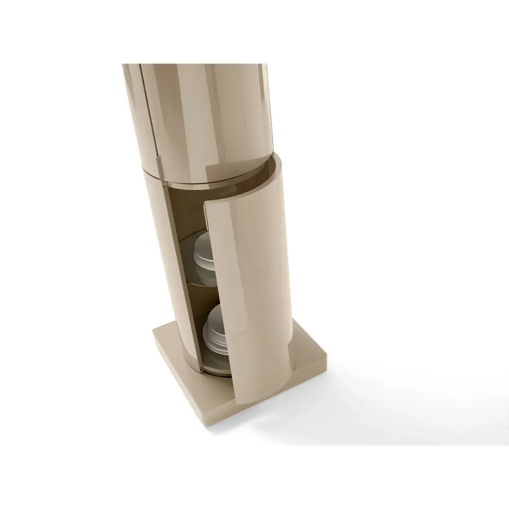 Introduce elegance and sophistication to your space with the Cylindrical Column Storage from Mogg La Dori 83. Made with curved plywood and available in a variety of lacquered finishes, this minimalist container features a glass shelf and a unique rotating design. Choose from two base options for a customized look.