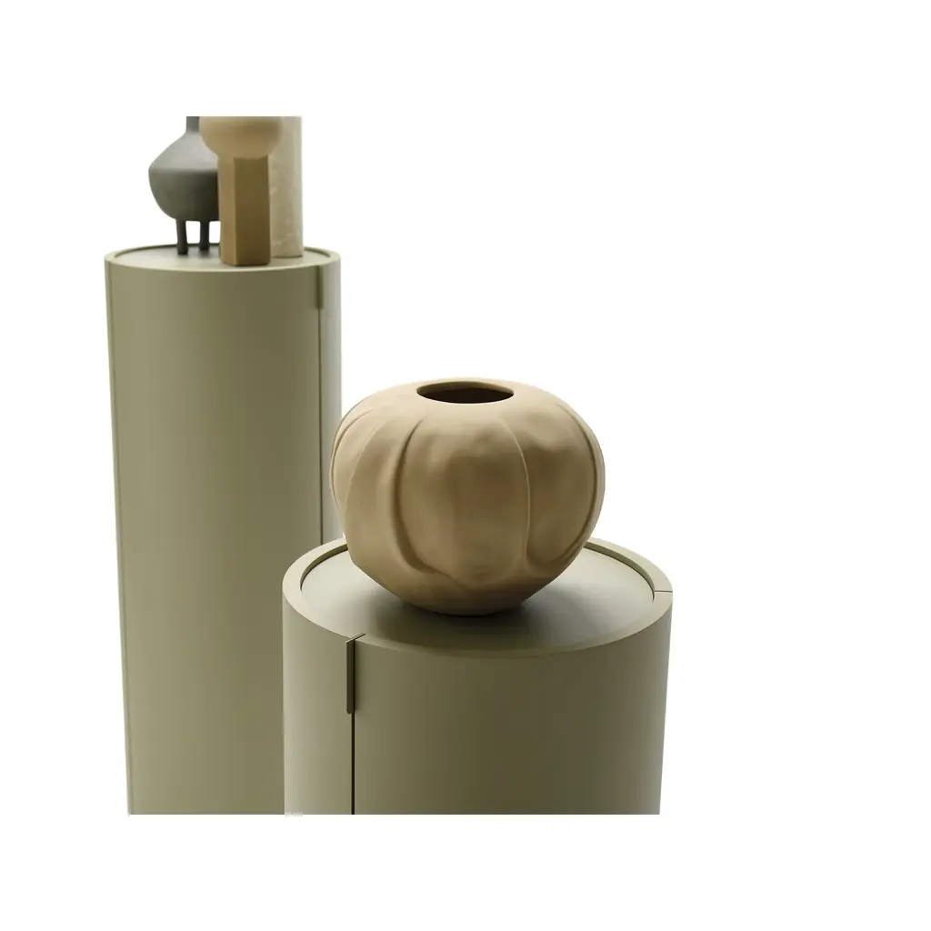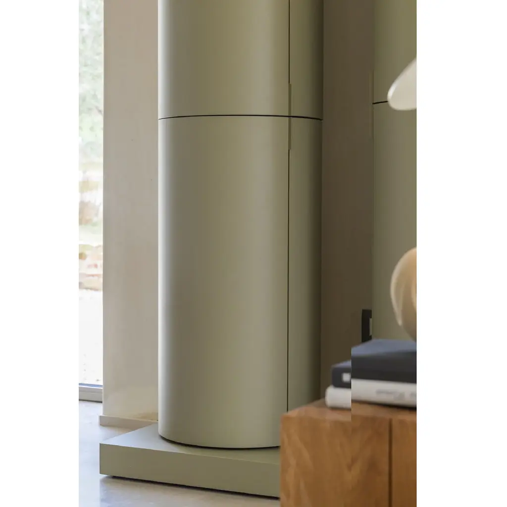 Introduce elegance and sophistication to your space with the Cylindrical Column Storage from Mogg La Dori 83. Made with curved plywood and available in a variety of lacquered finishes, this minimalist container features a glass shelf and a unique rotating design. Choose from two base options for a customized look.