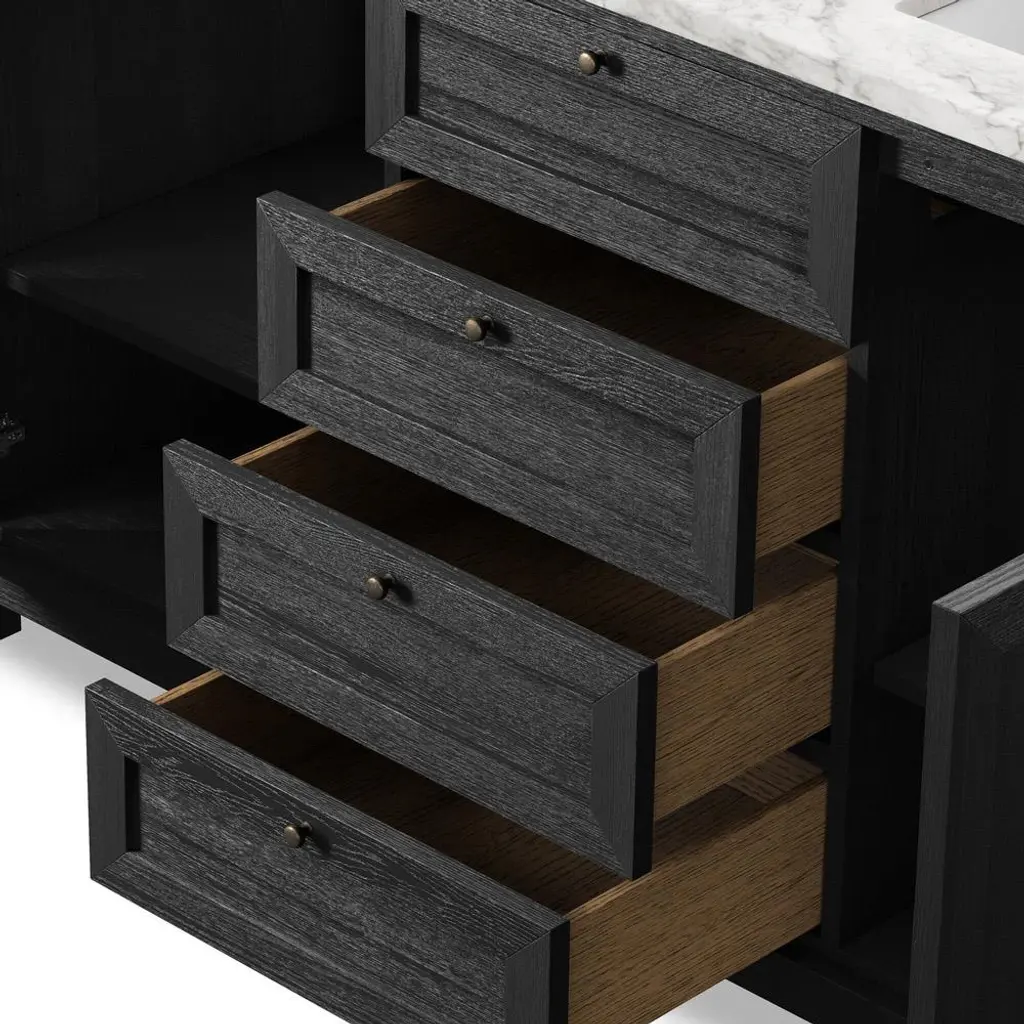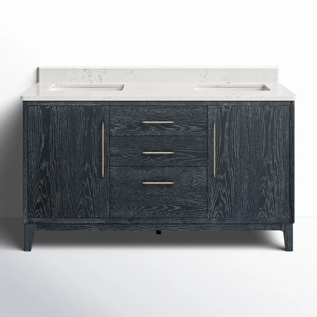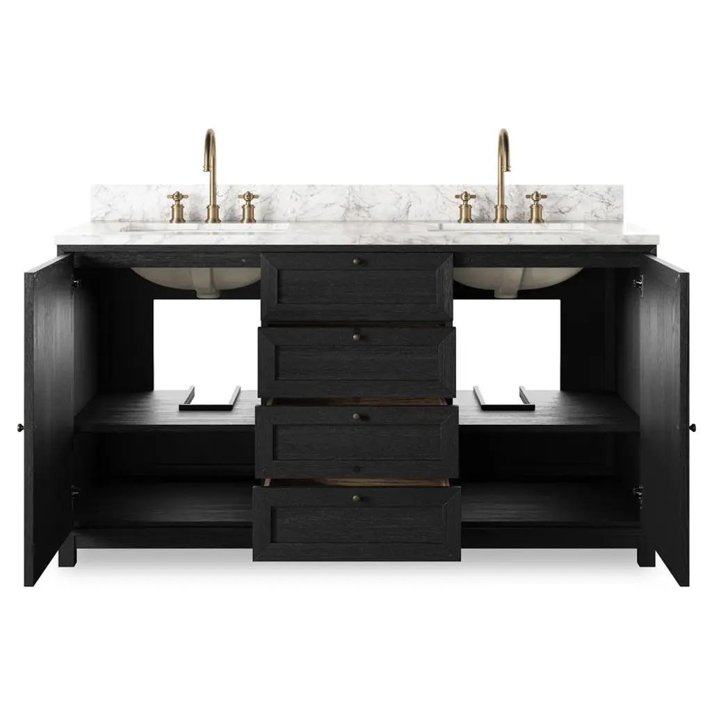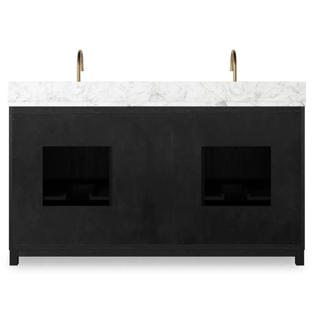 Cynthia Modern Classic Carrara Marble Black Oak Double Vanity Sink - 60"