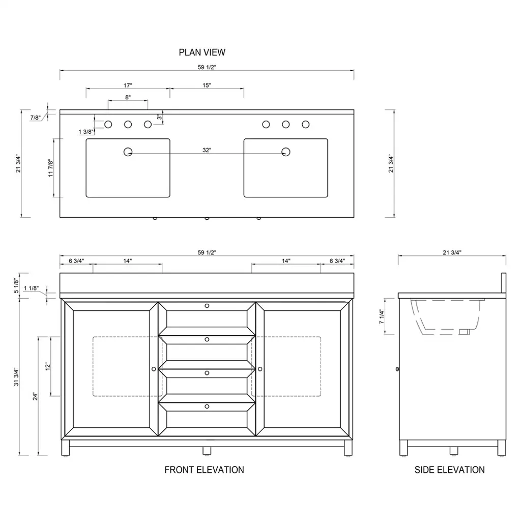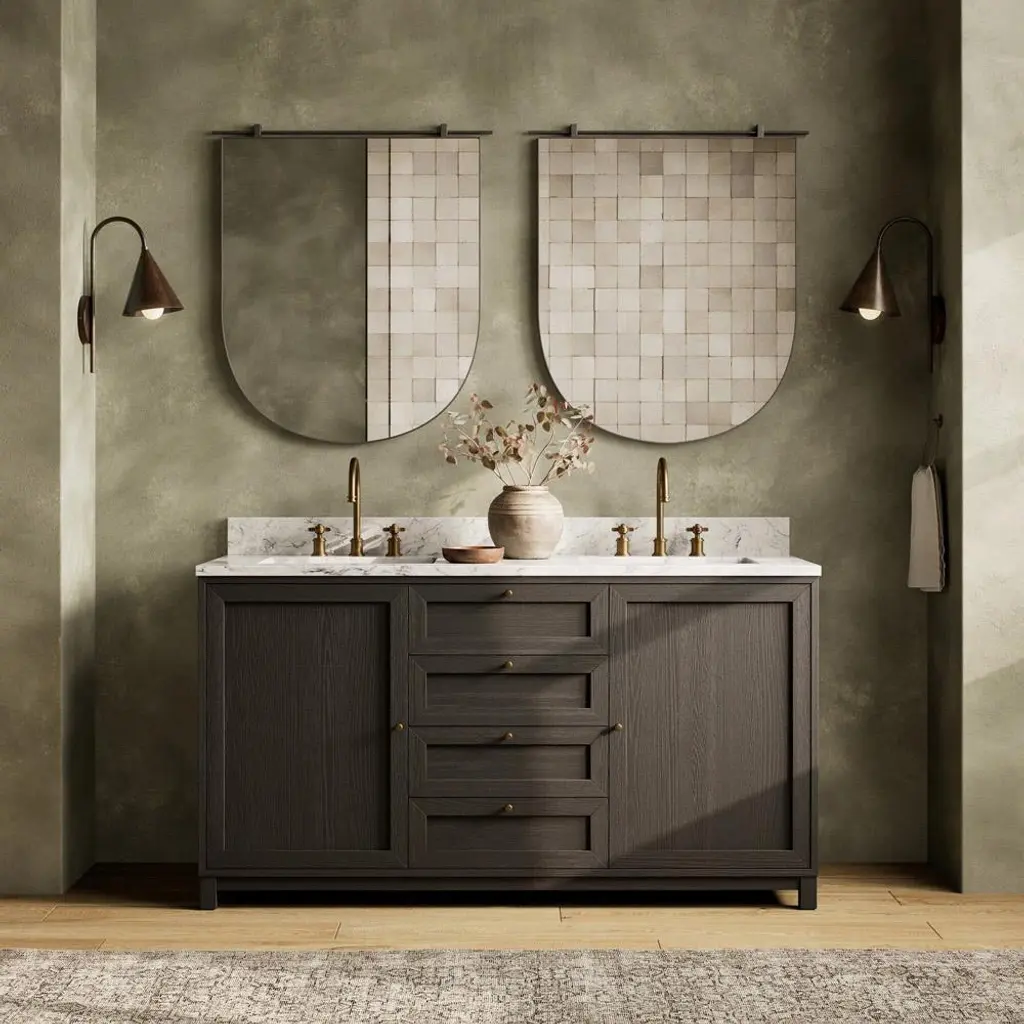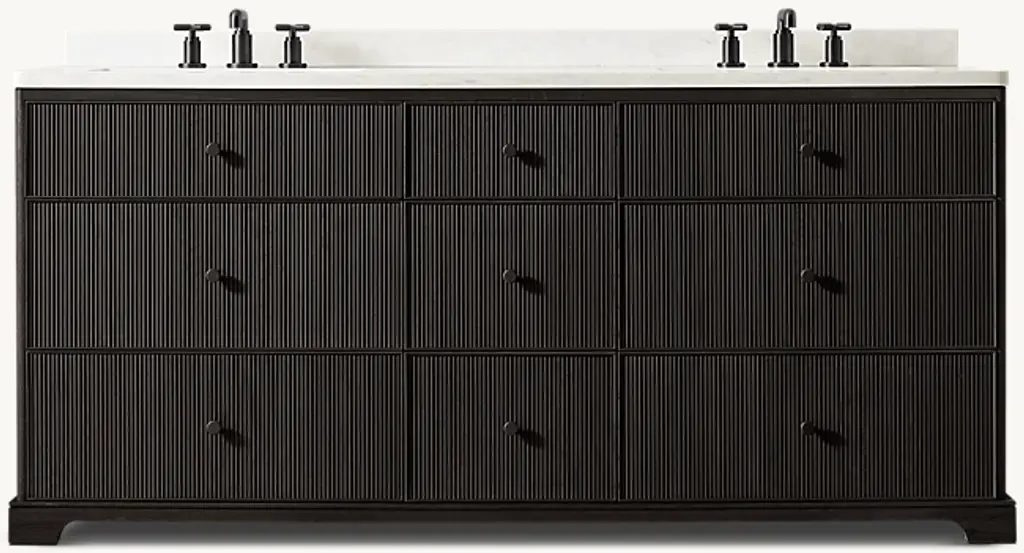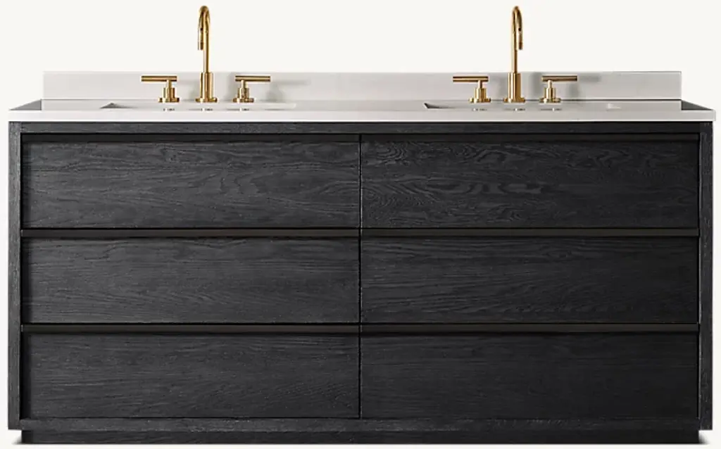 Cynthia Modern Classic Carrara Marble Black Oak Double Vanity Sink - 60"