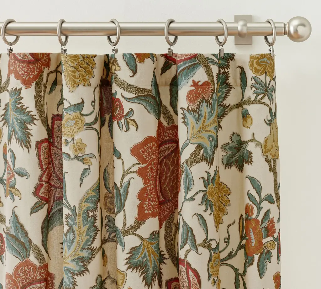 Palampores were highly prized by European merchants of the late 17th century. In the tradition of those rich hand-blocked designs, this curtain displays a lavish, swirling print of foliage and blooms.
