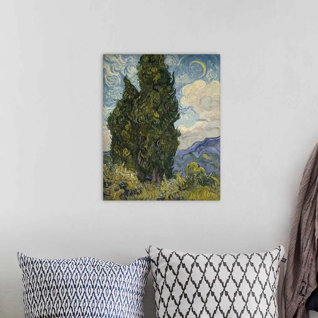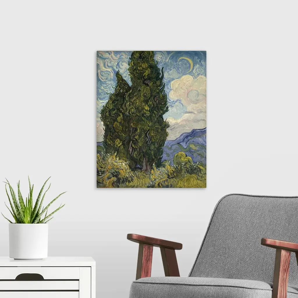 Cypresses, 1889 wall art for home and office decor. Discover canvas art prints, photos, mural, big canvas art and framed wall art in GreatBigCanvas.com's varied collections.